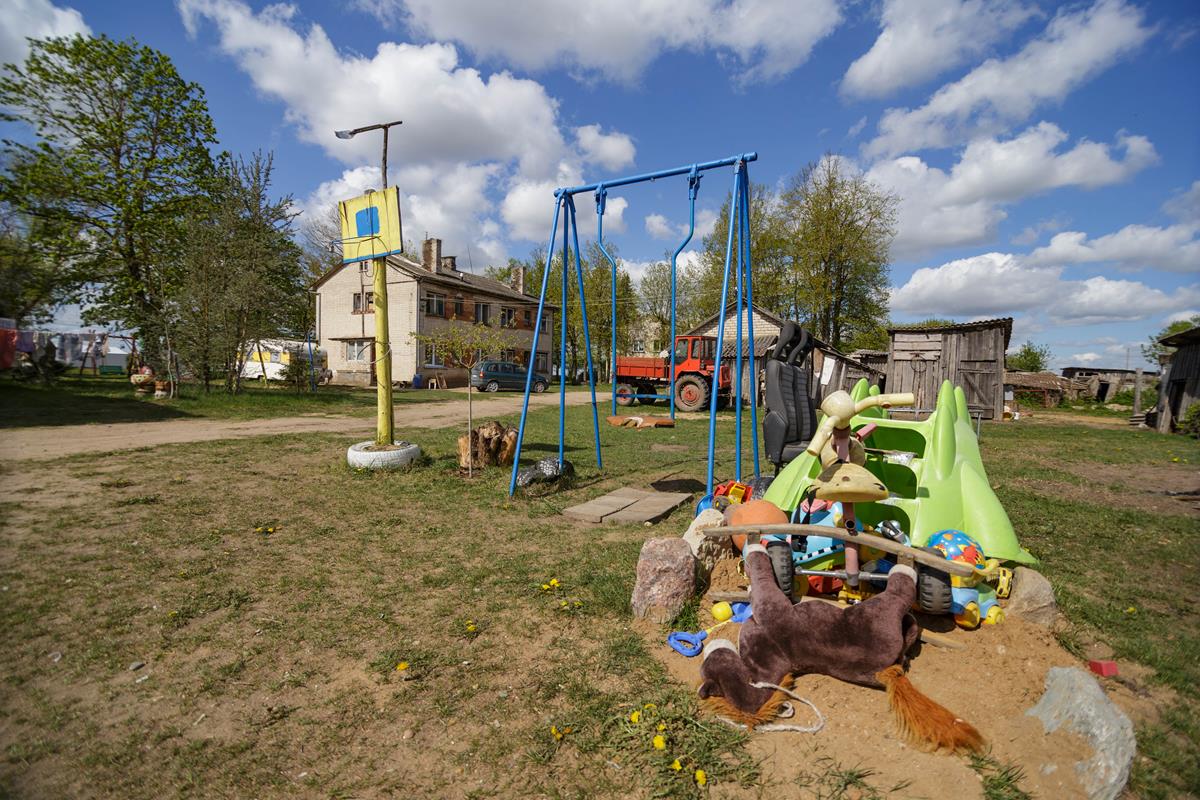 Kad daugiabučiai dar gyvenami, rodo vaikų žaidimų aikštelė, kieme stovintis traktoriukas, automobilis, dirbami daržai. Tų ženklų nepamatęs suabejotum – ne vieno daugiabučio žvilgsnis tuščias, išdaužytais stiklais.