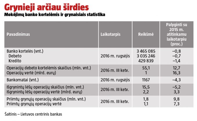 Banko kortelių Lietuvoje daug, banknotų ir monetų – dar daugiau
