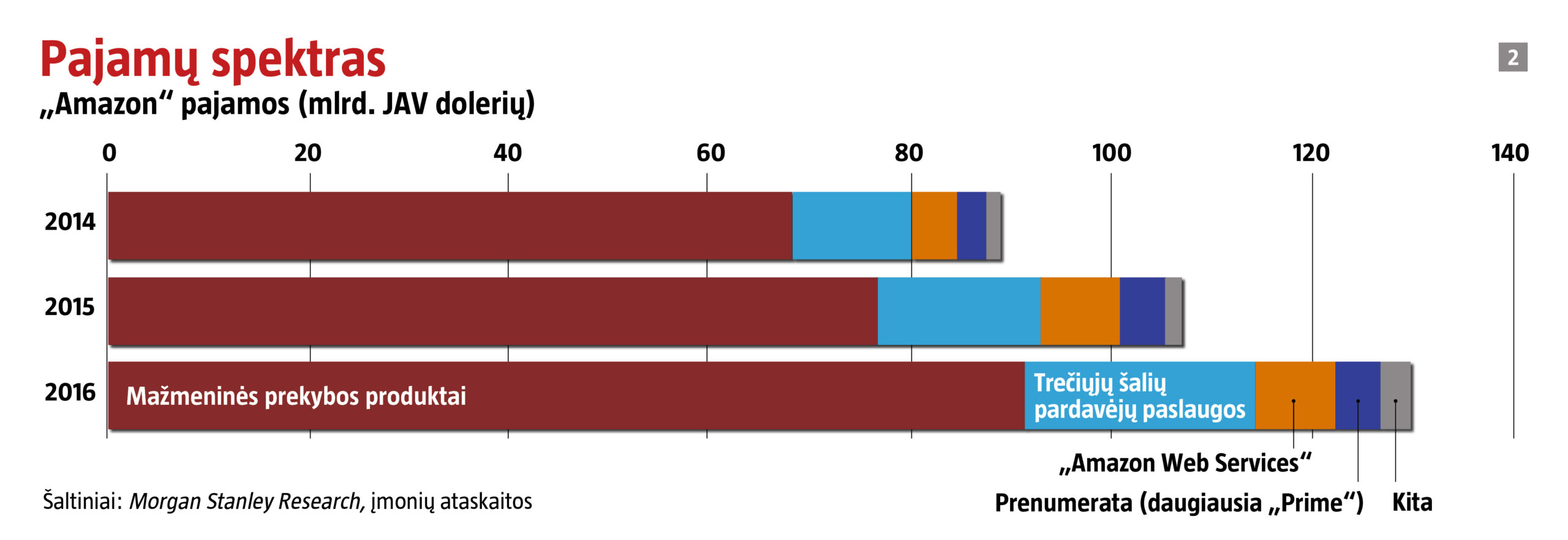 „Morgan Stanley“ numato, kad bendra „Amazon“ prekybos apimtis 2016–2025 m. kasmet vidutiniškai augs po 16 proc.