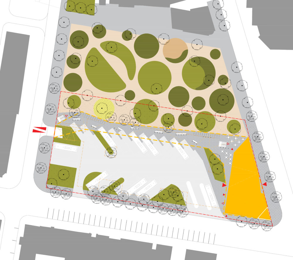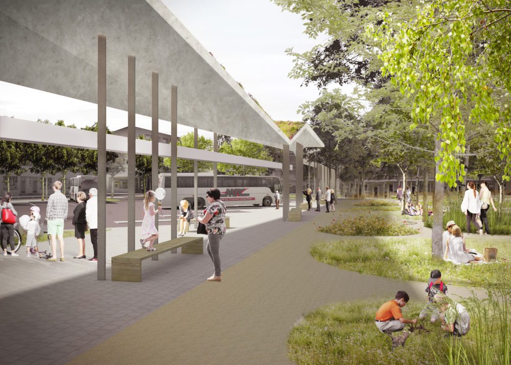Naujasis skveras – veja, medžiai, suoliukai, takeliai, gėlės, šviestuvai atsidurs dabartinės autobusų stoties perono vietoje, šalia senamiesčio, arčiau pėsčiųjų esamų takų, o iš pietinės pusės skverą ribos gerokai sumažėjęs ir jaukesnis naujosios stoties peronas. Autobuso laukiantys žmonės galės leisti laiką ne tik stotyje, ne tik po stogine, bet ir prie jos prisišliejusiame žaliame, o svarbiausia, saugiame skvere. Taip jis įgaus gyvybės, jame galės kurtis kavinukės, paslaugos, aplink jį nevažinės mašinos, kaip dabar, tai bus pėstiesiems skirta teritorija.
