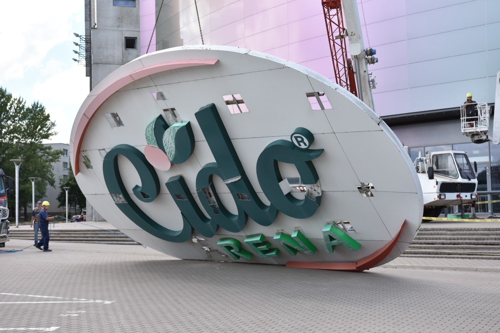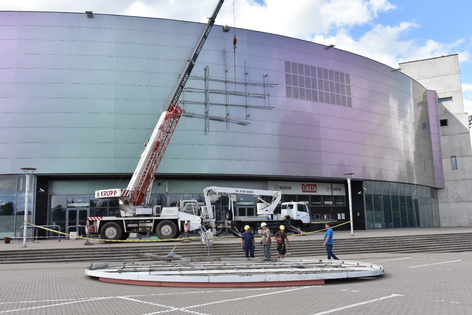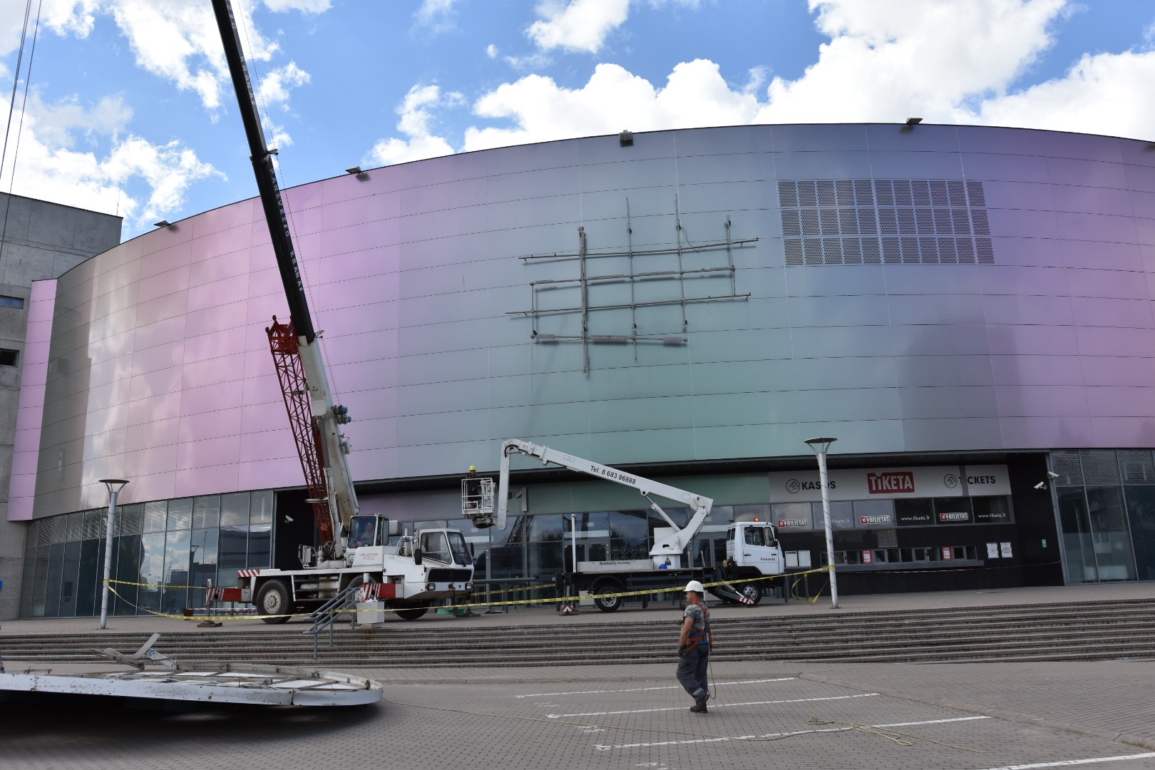 Miesto Savivaldybės Sporto skyriaus vedėjo Justino Jasiukaičio teigimu, senasis ženklas demontuotas pasikeitus arenos koncesininkams.
