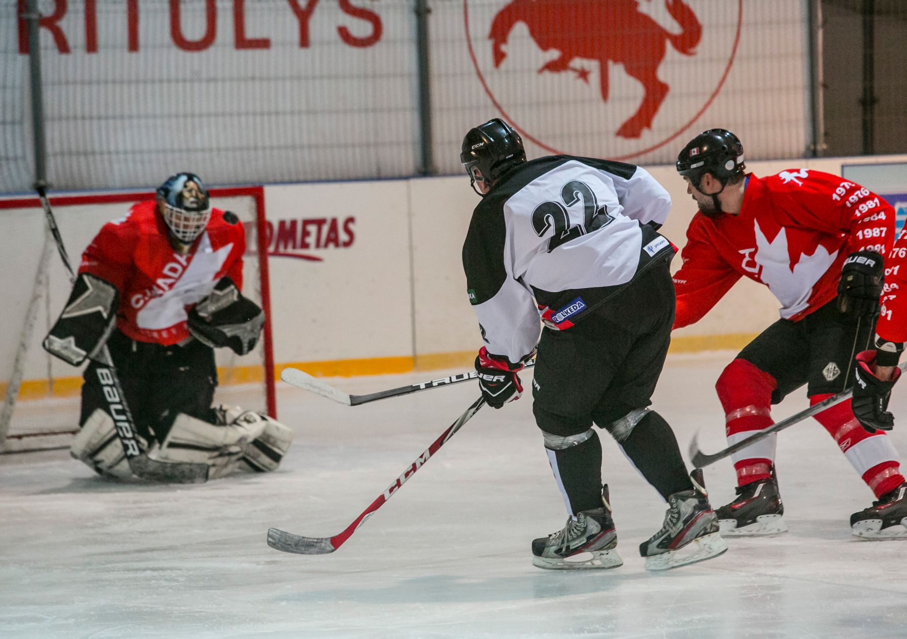 Kanadiečiai neturėjo didelio vargo su „Olimpo“ ledo ritulininkais. Jau pirmame kėlinyje svečiai pirmavo net 7:0. Po tokios pradžios komandos nusprendė šiek tiek išlyginti jėgas. Į aukštaičių pusę perėjo keli kanadiečiai, o prie svečių ekipos prisijungė keli panevėžiečiai. Net ir šios korekcijos didelės intrigos neatnešė. Draugiškas mačas baigėsi svečių pergale 12:1.
