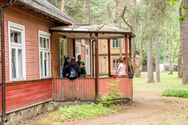 Merginai priėjus prie vieno iš stovyklavietės namelių, muzika nutilo.