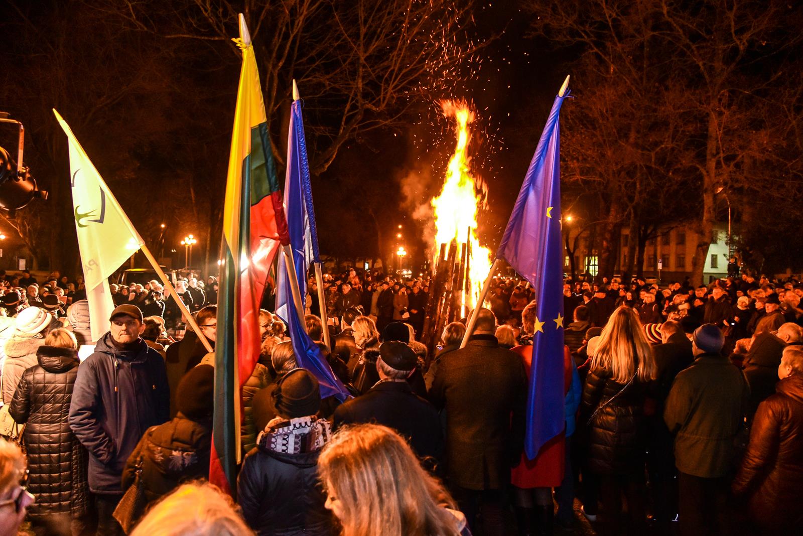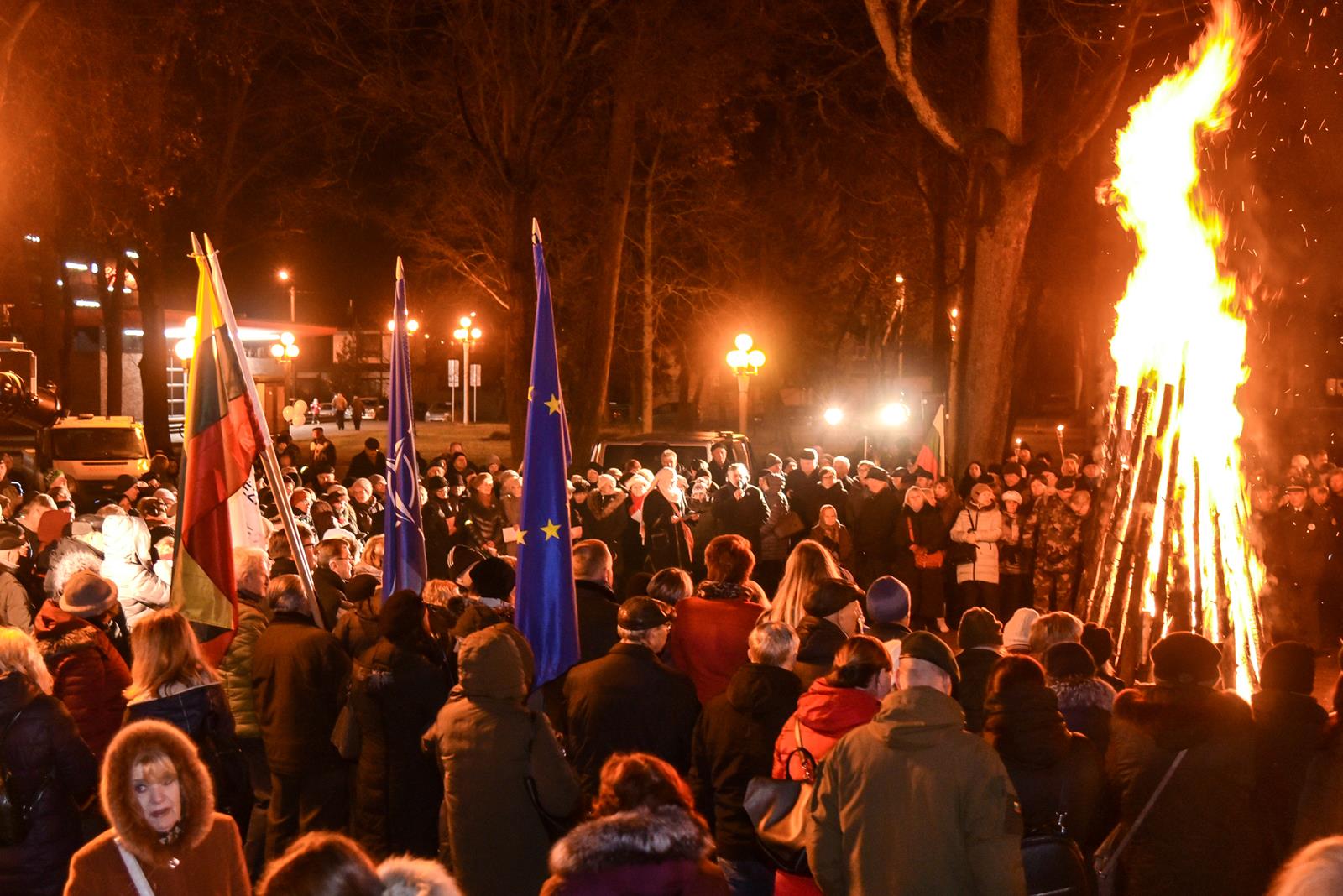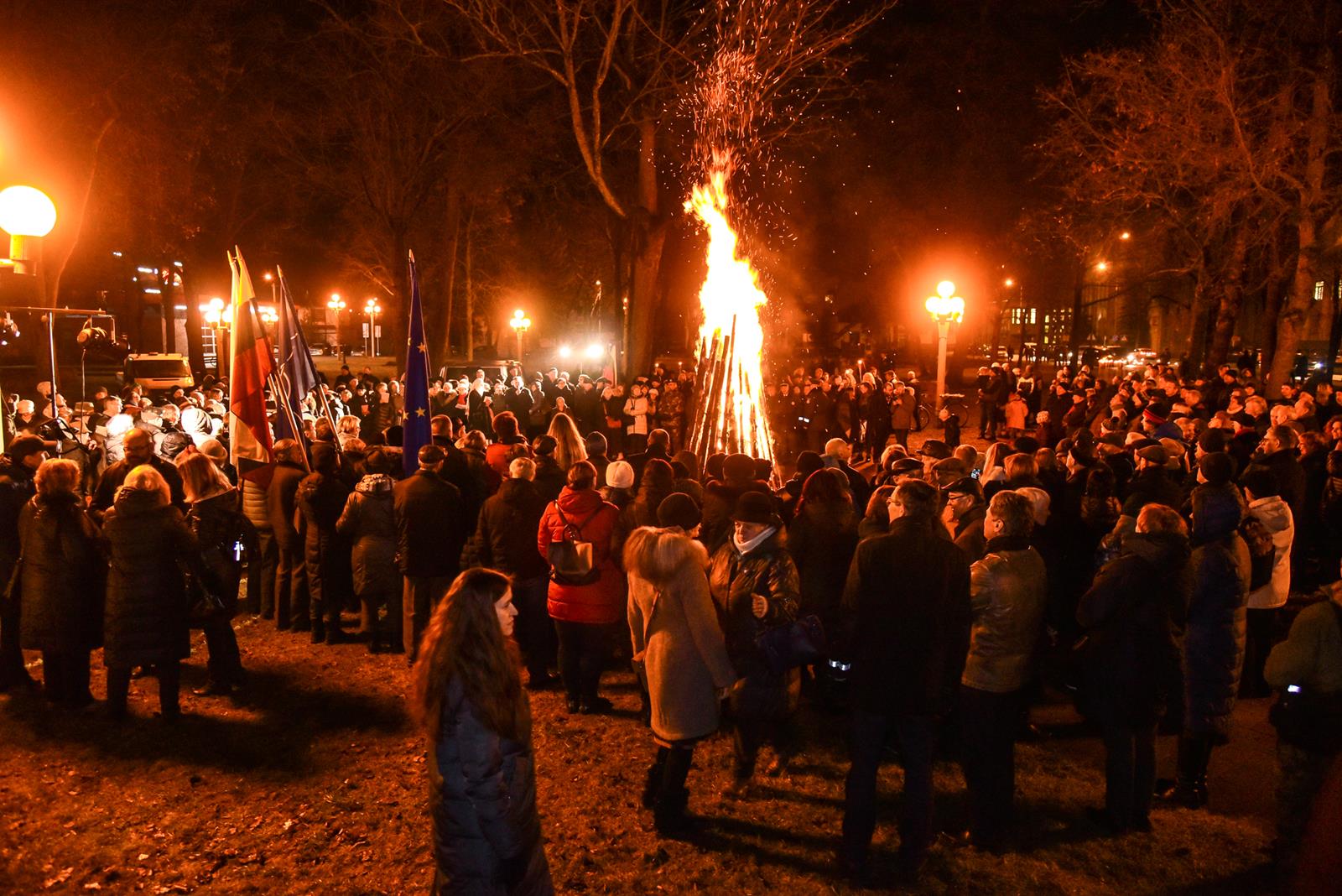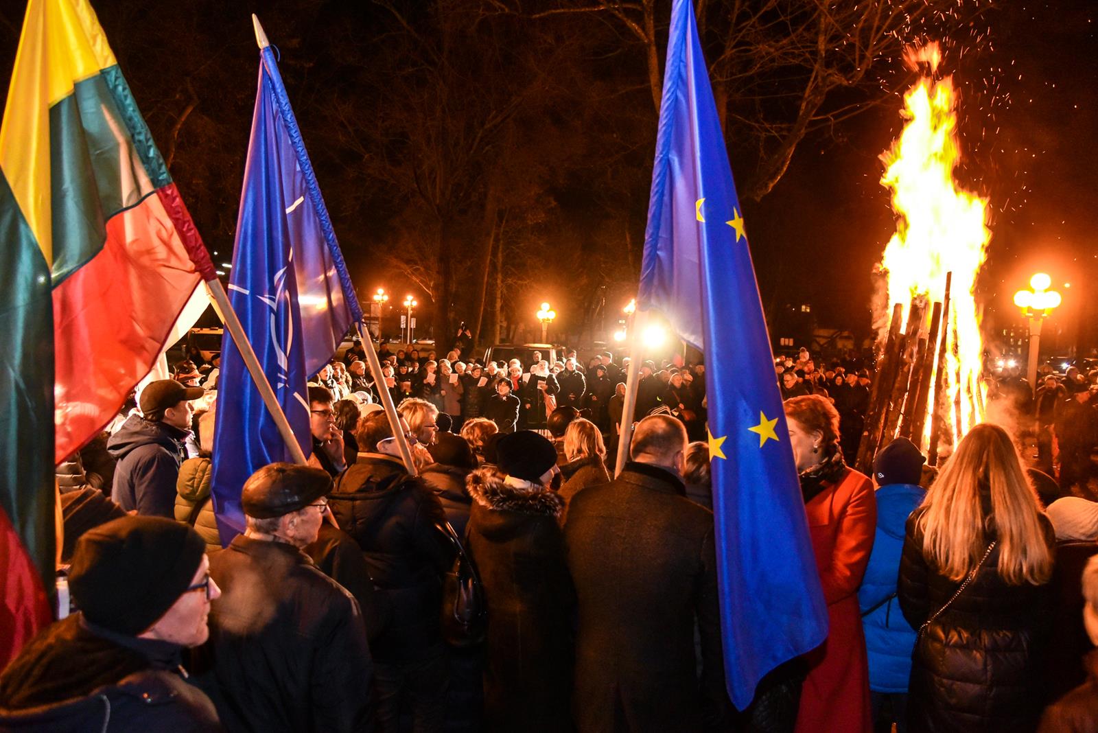 Tiems įvykiams prisiminti pirmadienio vakarą iš kino centro „Garsas“ degančiais fakelais nešina eisena patraukė į Sausio 13-osios skverą. Istorinius įvykius menančiame skvere tradiciškai kasmet uždegamas atminimo laužas, prisimenami žuvusieji, dalijamasi savais prisiminimais, dainuojamos tąnakt skambėjusios dainos.
