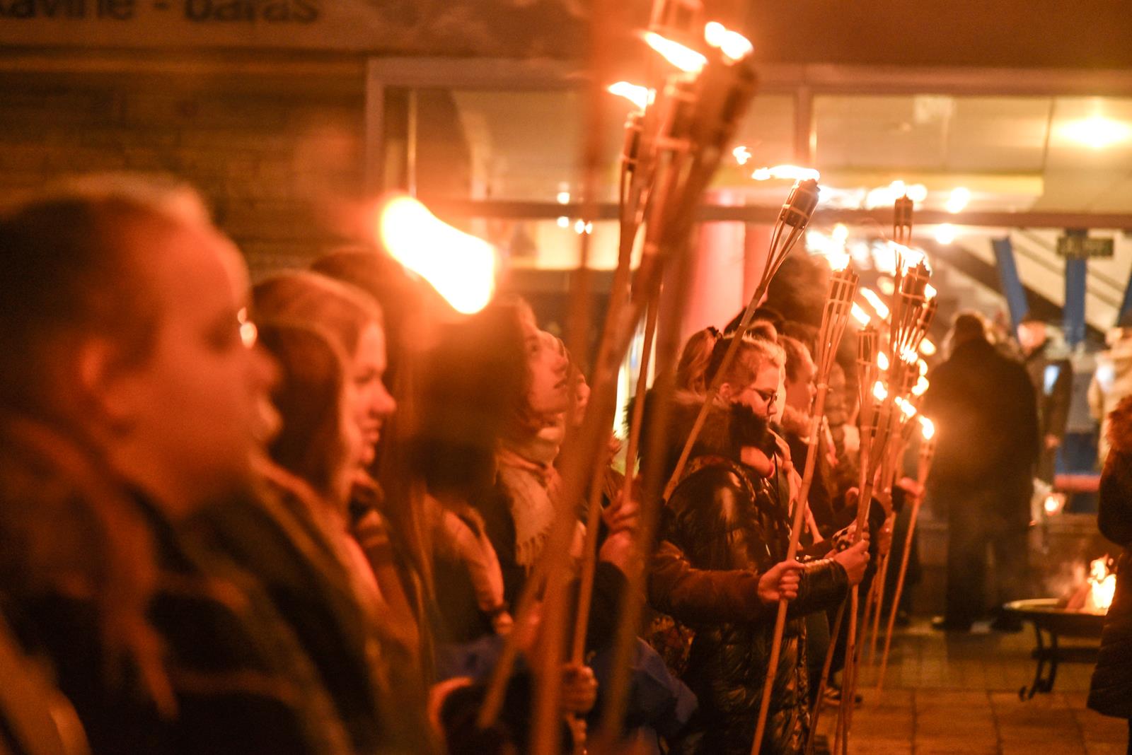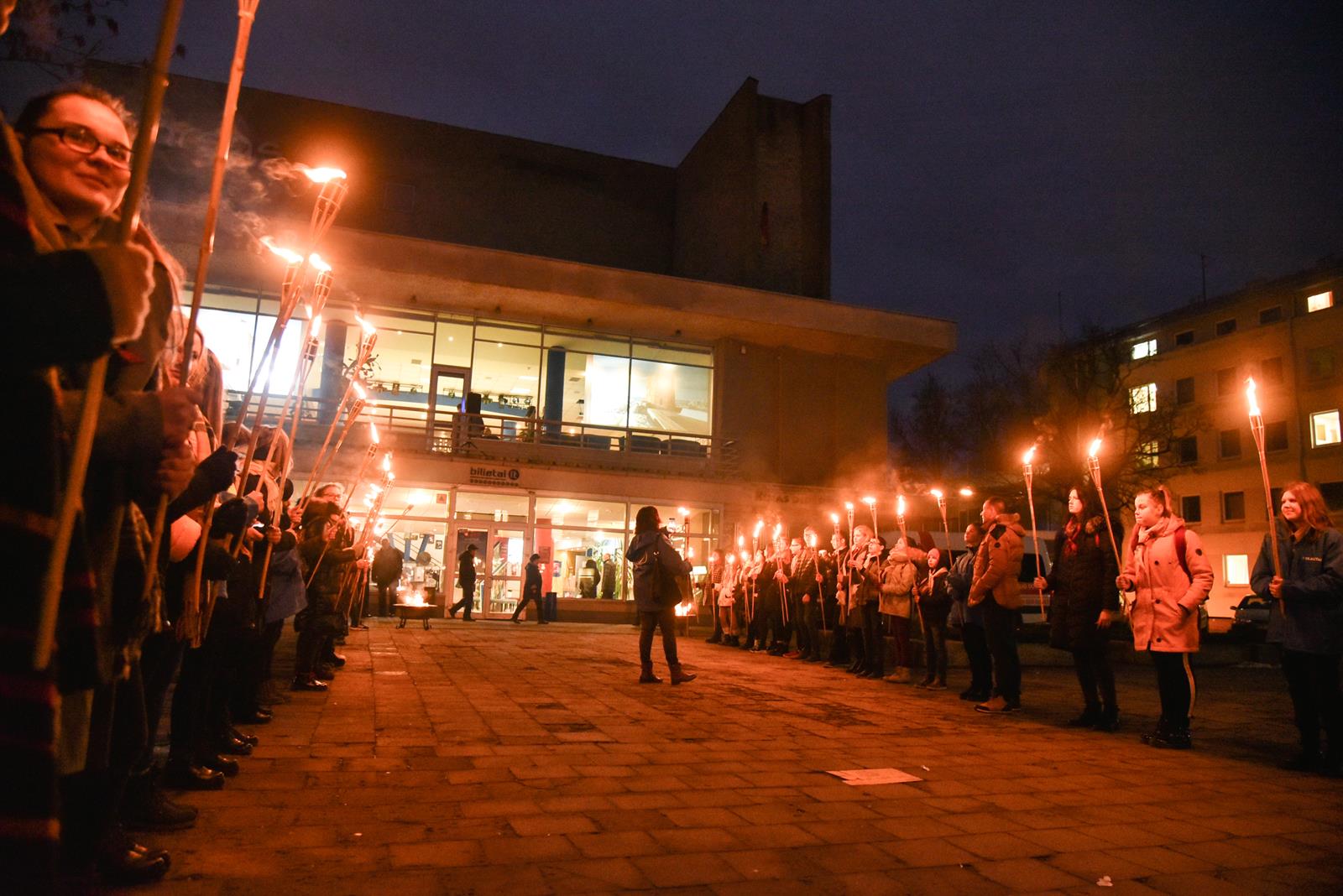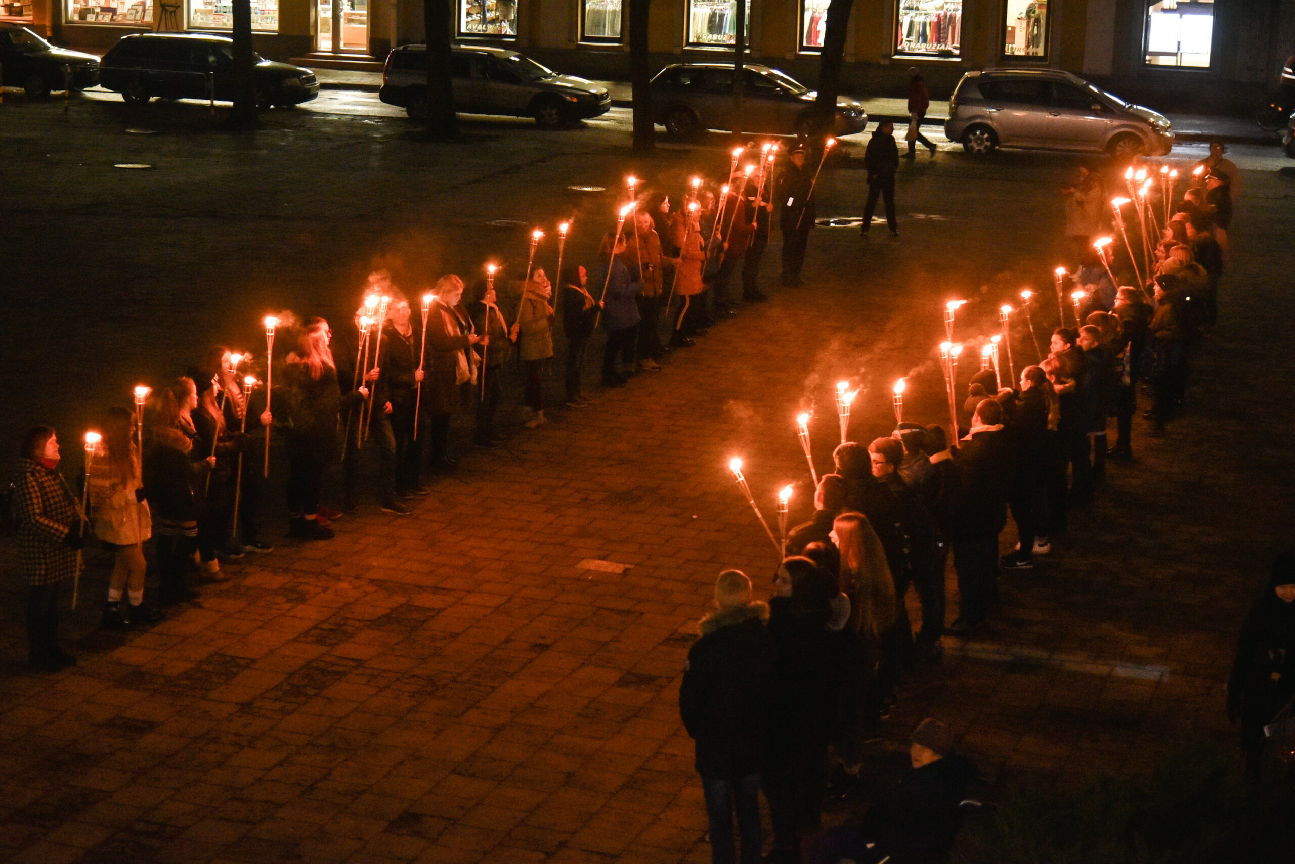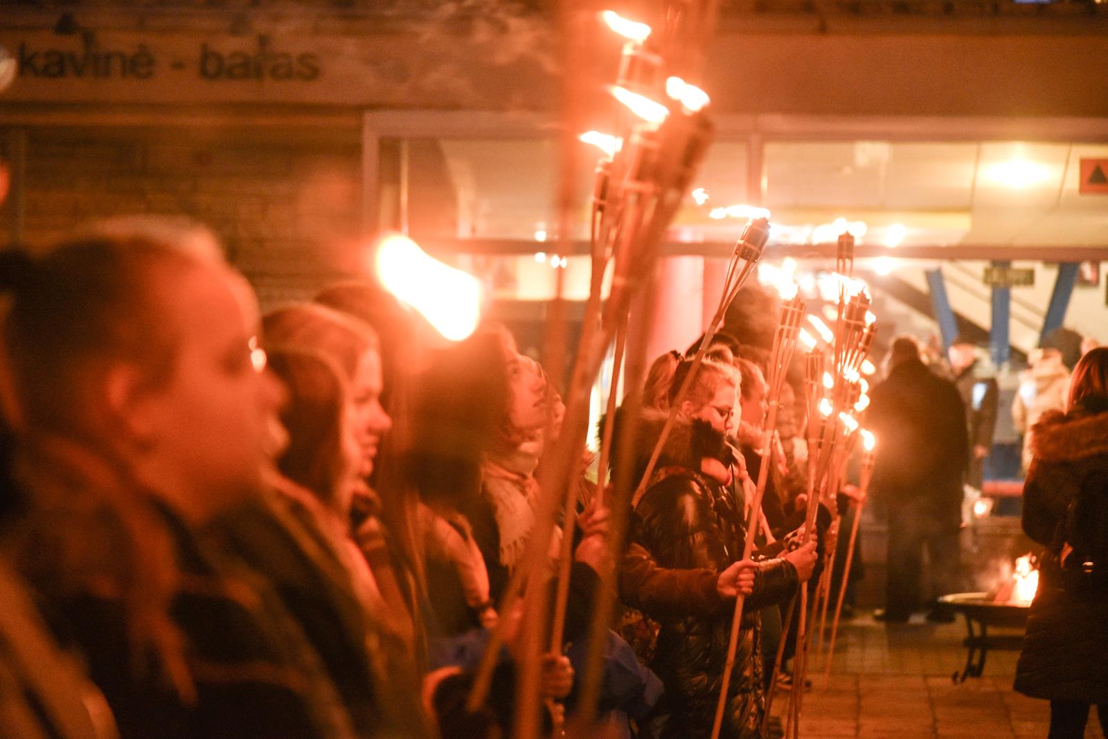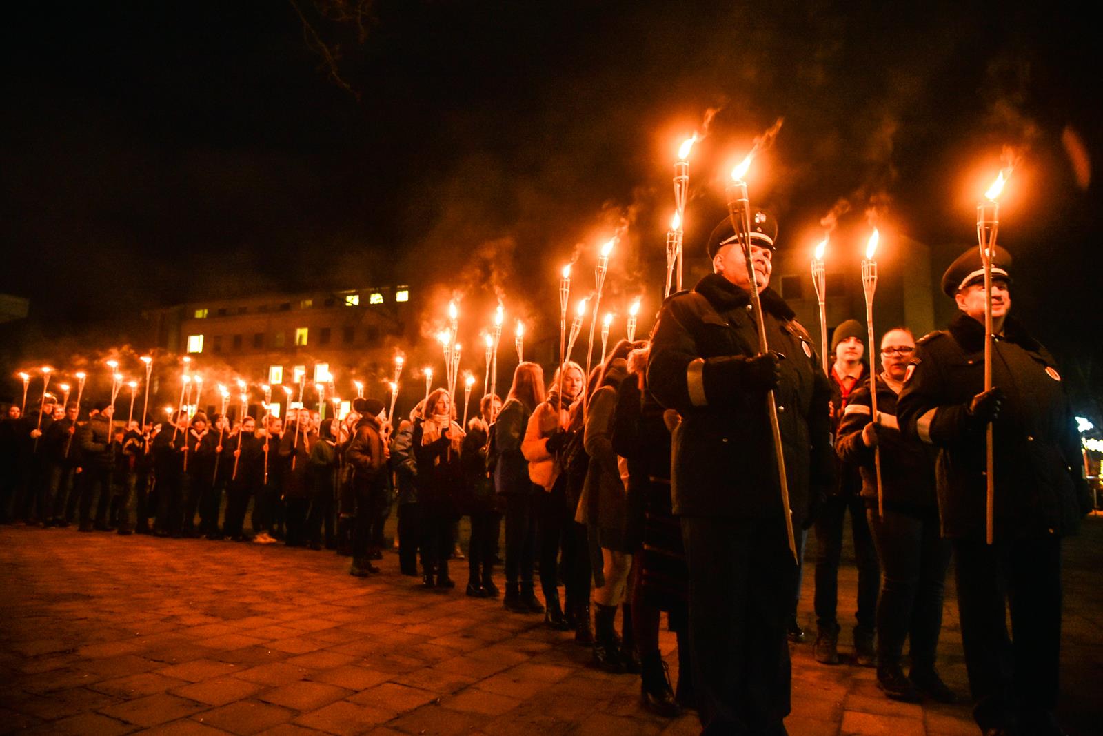 Tiems įvykiams prisiminti pirmadienio vakarą iš kino centro „Garsas“ degančiais fakelais nešina eisena patraukė į Sausio 13-osios skverą. Istorinius įvykius menančiame skvere tradiciškai kasmet uždegamas atminimo laužas, prisimenami žuvusieji, dalijamasi savais prisiminimais, dainuojamos tąnakt skambėjusios dainos.