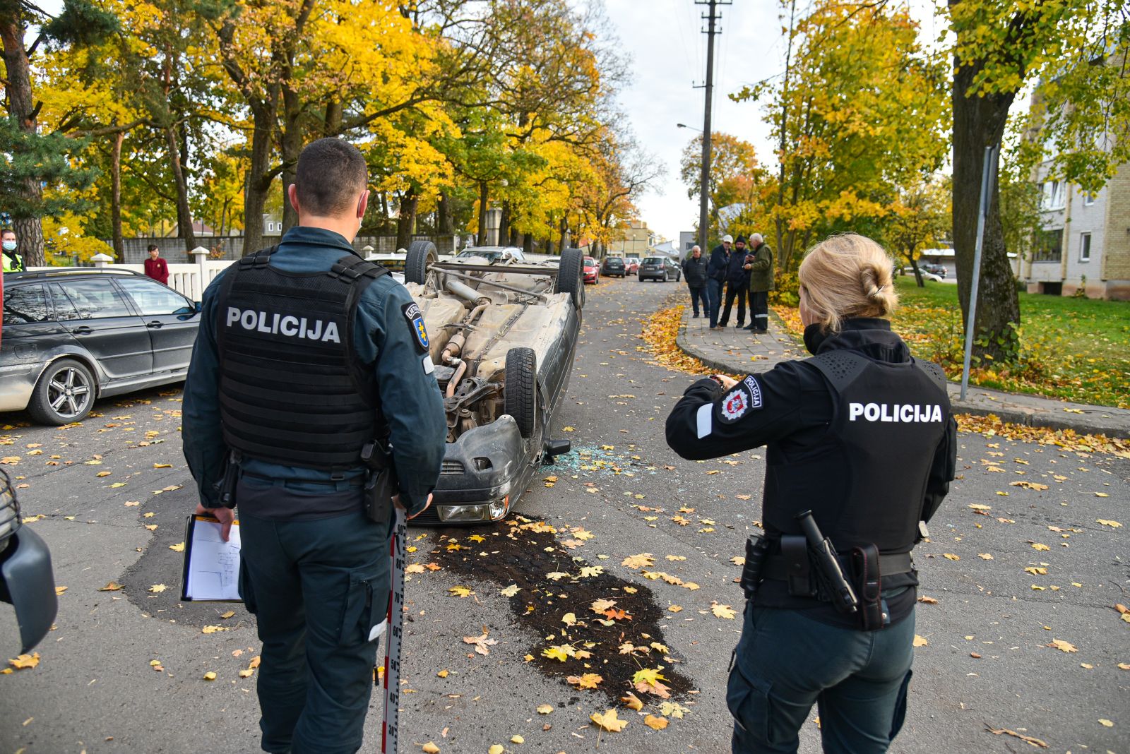 Panevėžyje trečiadienį, baigiantis darbo dienai, Krekenavos gatvėje į stovintį automobilį atsitrenkusi „Audi“ vertėsi ant stogo. Per avariją nukentėjo du žmonės.