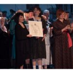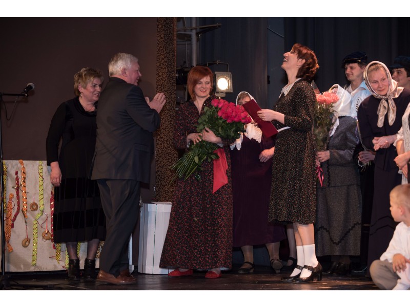 Kartu su gausybe garbingų svečių miežiškiečius sveikino ir apdovanojimą įteikė Nacionalinio kultūros centro Teatro poskyrio vadovė Irena Maciulevičienė.