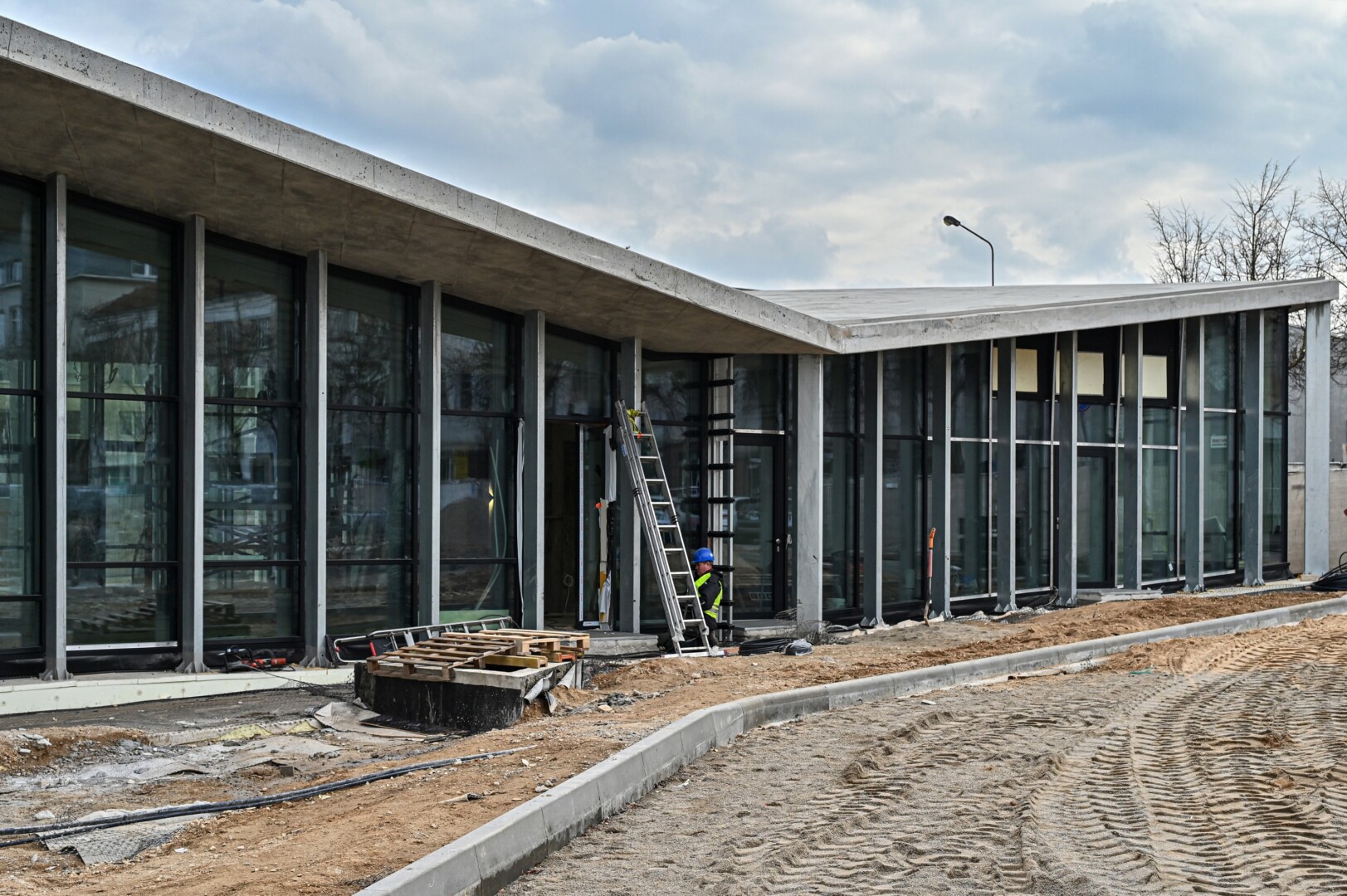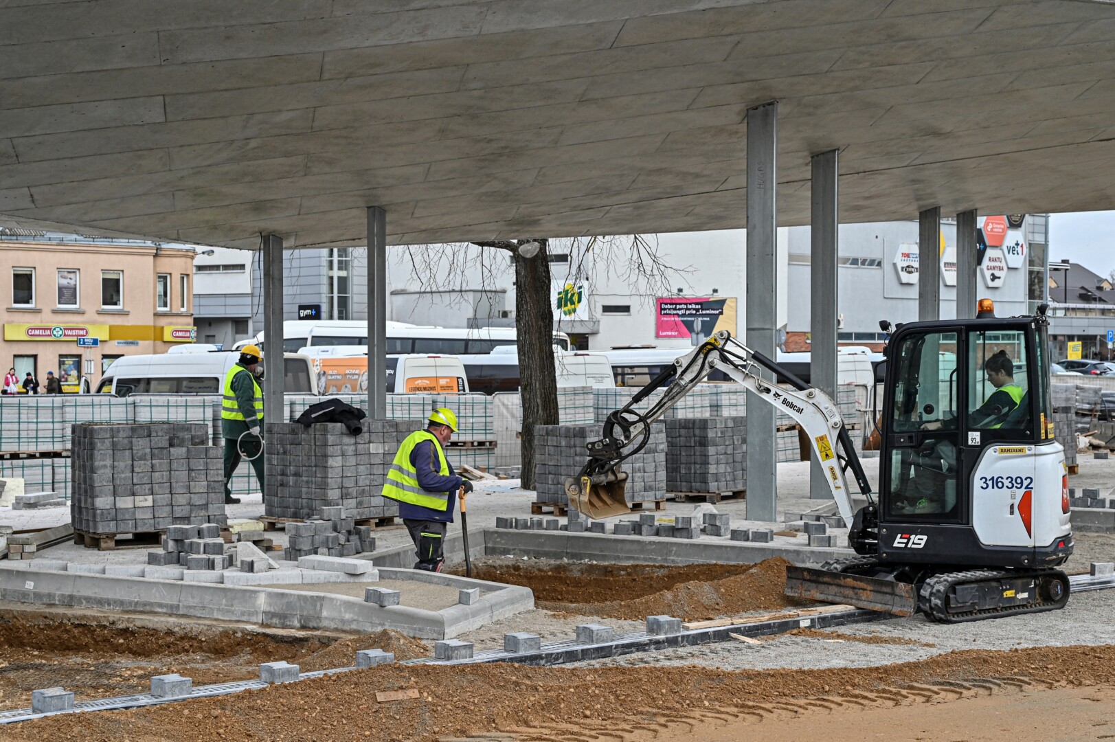 Kaip teigiama miesto Savivaldybės pranešime, šiuo metu atliekami vidaus apdailos darbai, tvarkoma perono ir keleivių įlaipinimo aikštelės, pagrindinėje salėje pradedami sienų ir lubų montavimo darbai.
