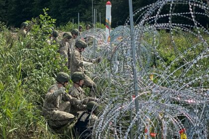 Pasienyje su Baltarusija jau nutiesta apie 20 kilometrų pjaunančios vielos užtvaros, sako…