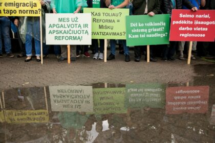 Nepaisant liūties ketvirtadienį prie Seimo susirinko apie pora tūkstančių reforma nepatenkintų urėdijų…