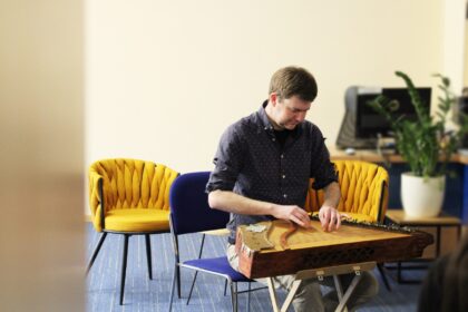Bibliotekoje – amerikietis apie lietuvių liaudies instrumentus