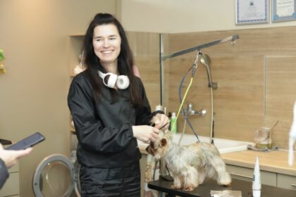 Šuniukų grožio fėja pasikrauna bėgimo trasoje