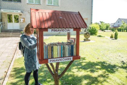 Šalia Piniavos gyventojų bendruomenės pastato stovintis nedidelis namelis – netradicinė biblioteka, kur…