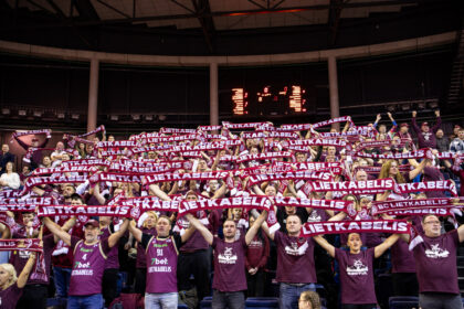 Arena nusidažo vyšnine spalva, į viršų kyla šalikai su panevėžiečiams brangiu vardu…
