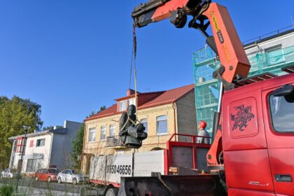 Į Panevėžio centrą, Kranto gatvę, sugrįžo atnaujintas paminklas kalbininkui, vertėjui ir ilgamečiam…