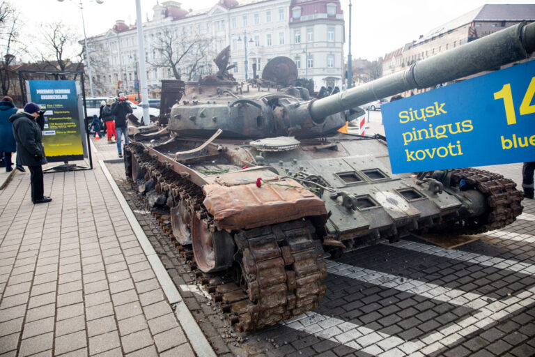 Minint Rusijos pradėto karo Ukrainoje metines, į Vilnių atvežtas Ukrainos kariuomenės sunaikintas…