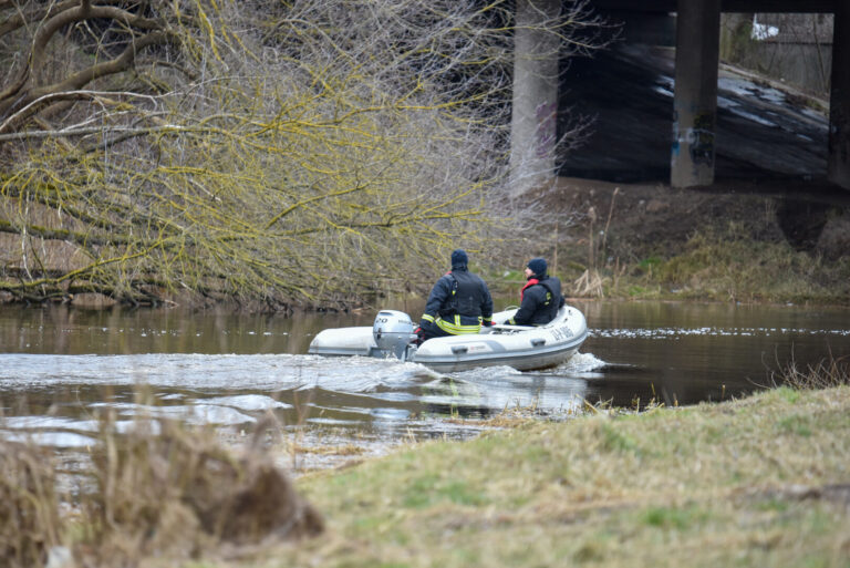 Ugniagesių gelbėtojų ir policijos pareigūnų pajėgos šukuoja Nevėžio upę ir jos prieigas,…