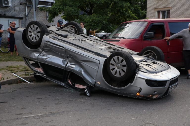 Panevėžyje susidūrė trys automobiliai, vienas jų vertėsi ant stogo