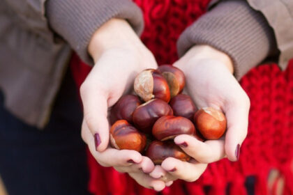 Iš žalio dygliuoto kamuolėlio išluptas rudas kaštono vaisius – ne tik smagus…