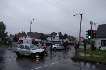 Sankryžoje vienam automobiliui išlėkus į sankryžą degant raudonam šviesoforo signalui, nukentėjo degant…