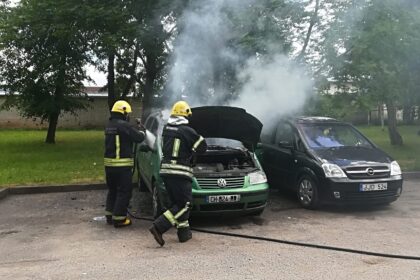 Daugiabučio kieme užsiliepsnojo automobiliai