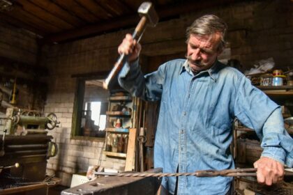 Garsas apie Panevėžio krašte kartu su vyru kalvėje plaktuku mojuojančią moterį…