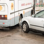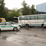 Panevėžio autobusų stotyje neišsiteko priemiestinis autobusas ir keleivį vežęs taksi automobilis.