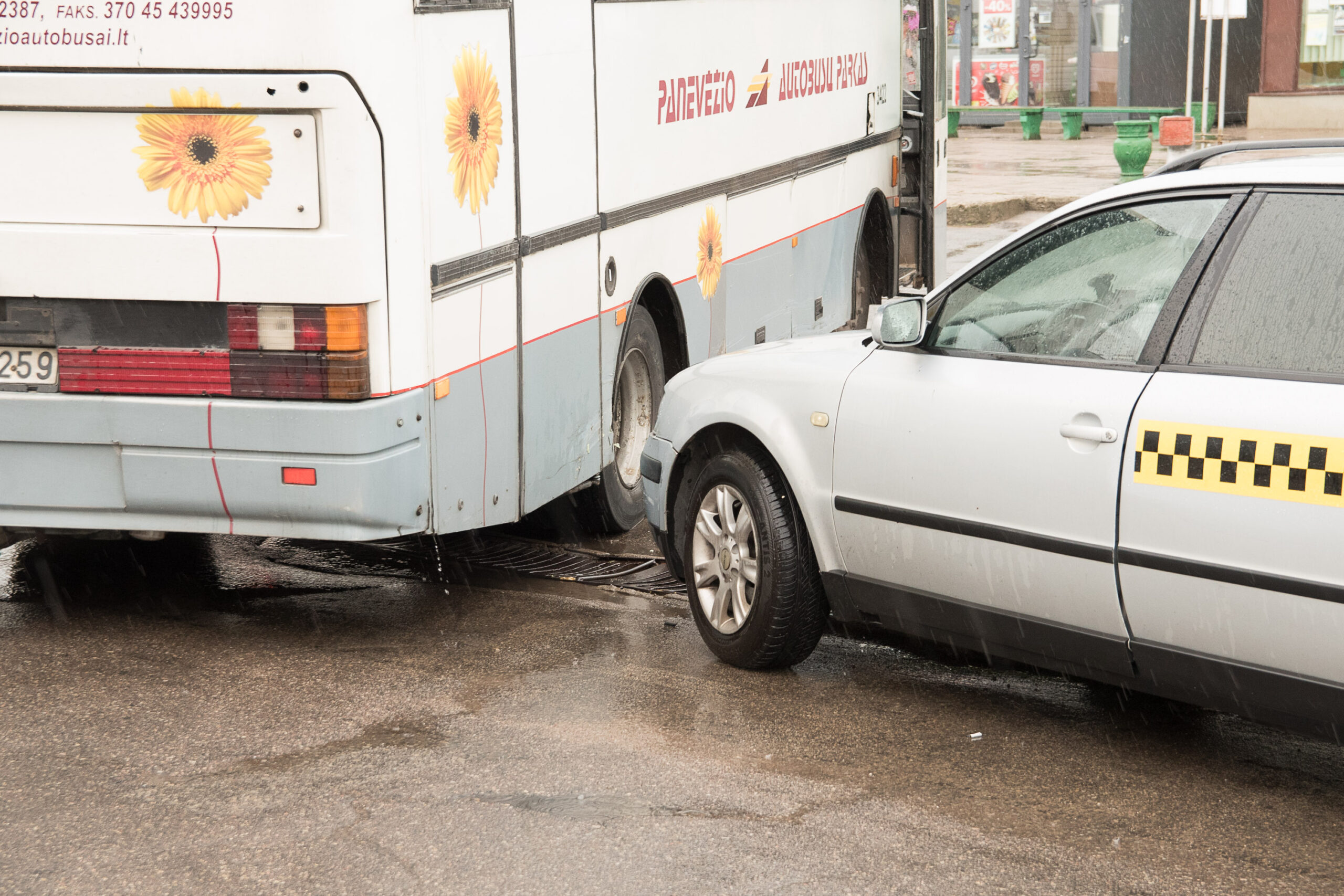 Pranešimo apie susidūrusius autobusą ir „Volkswagen Passat“ taksi automobilį Panevėžio policija sulaukė pirmadienį, keliolika minučių iki 14 val.