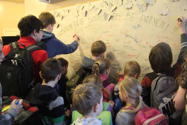 Viskas prasidėjo akcija „Prisijunk“. Pirmadienio rytą visi bendruomenės nariai savo parašais patvirtino, kad netoleruoja patyčių bei prisijungia prie šios savaitės. Mokyklos taryba kiekvienam dovanojo mokinių kurtą savaitės simbolį – drugelį.