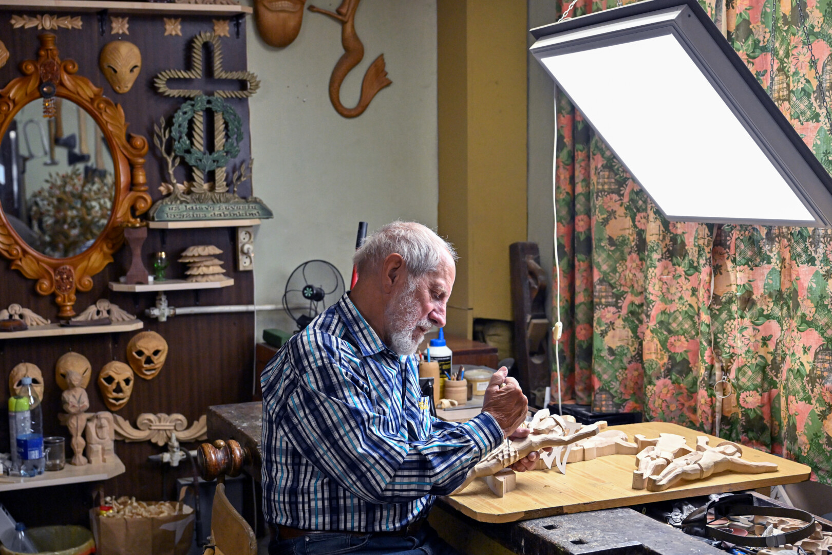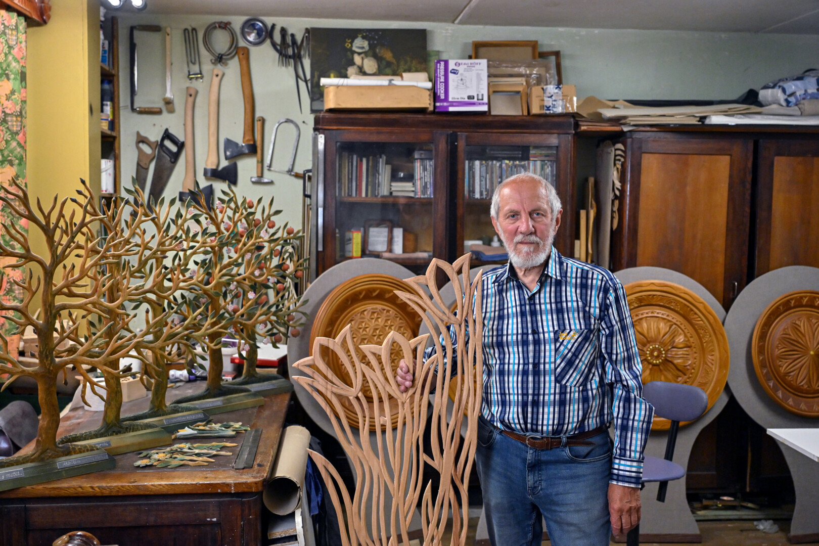 Vis dėlto svarbiausia meistro žaliava – medis. Liepa, ąžuolas, raudonmedis, vinkšna, kita mediena ir dabar padeda jam įgyvendinti visus sumanymus.