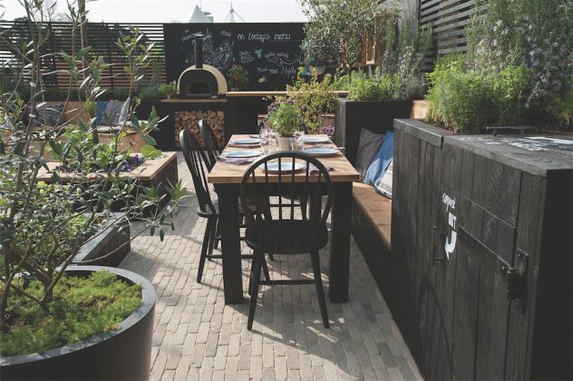 62 kv. metrų ploto sodas – svetainė-valgomasis-virtuvė – Victorios sugalvotas kaip linksma laisvalaikio leidimo bei valgymo vieta jaunai smagurių porelei bei draugams. Stilingas, gyvenimo gamtoje džiaugsmą atspindintis sodas įkūnijo „lauko kambarį“ bei namų pratęsimo lauke idėją.