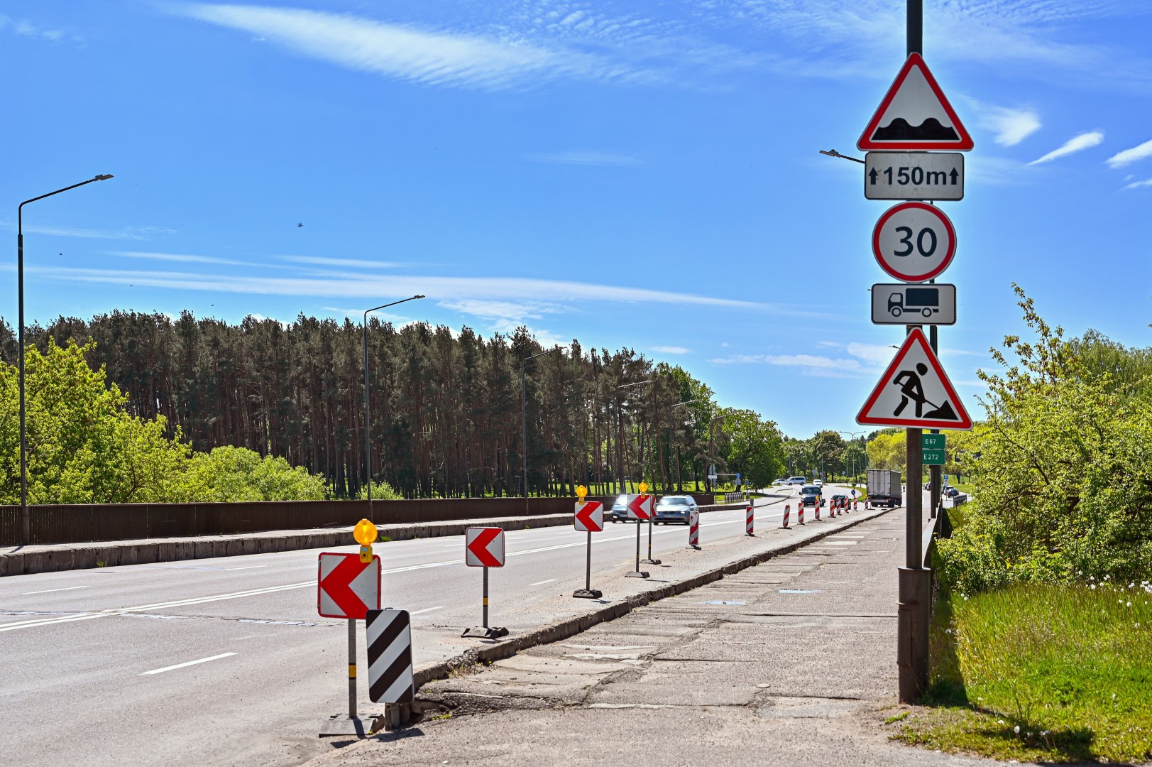 Eismo ribojimai įvedami ir J. Biliūno gatvės tiltui. Tik čia priemonių imamasi ne dėl darbų, o dėl fiksuotų gelžbetoninių konstrukcijų pažaidų. Šios, pasak specialistų, ilgainiui gali sukelti rimtesnių problemų, jei tiltas ir toliau bus eksploatuojamas visu pajėgumu.