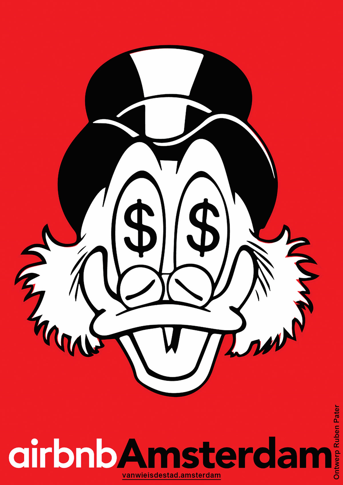 Amsterdame gyvenantis grafikos dizaineris Rubenas Pateris, matydamas vis gilėjančią „Airbnb“ žaizdą, šiemet su kolegomis ėmėsi „Kam priklauso Amsterdamas?“ („Van Wie Is Amsterdam“) kampanijos. Grupė menininkų sukūrė 38 plakatų seriją, skelbiančią apie išsipūtusias būsto kainas ir kitas „Airbnb“ keliamas problemas. Iniciatyva, pasak R. Paterio, paremta pilietiniu bendradarbiavimu. Kiekvienas norintis gali iš kampanijos puslapio nemokamai parsisiųsti patikusį plakatą ir jį pakabinti savo namo languose ar kitose miesto erdvėse. „Šia kampanija žmonėms suteikiame balsą, kuriuo jie gali pareikšti savo nepasitenkinimą, o taip pat susiburti ir prisidėti prie tokio miesto, kokiame jie nori gyventi, kūrimo. Tikimės, jog kampanija atkreips ir „Airbnb“ šeimininkų, ypač tų, kurie platformoje nuomoja keletą butų, dėmesį į tai, kokią problemą jie kuria savame mieste, ir sužadins asmeninę jų atsakomybę“, – aiškino dizaineris.