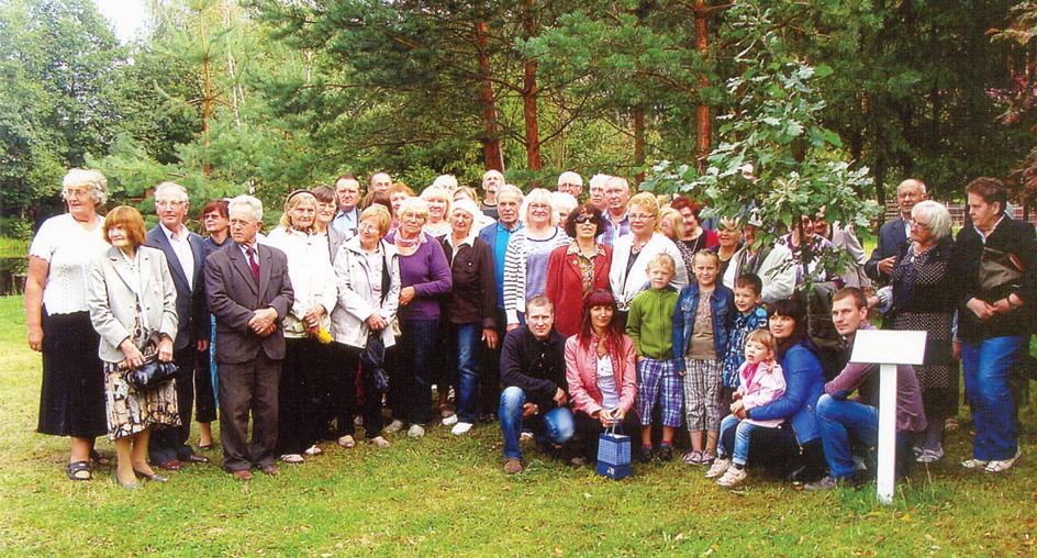 Sodininkai prie paaugusio ąžuoliuko, kurį pasodino 30-ojo bendrijos gimtadienio proga. J. Vaidilos nuotr.