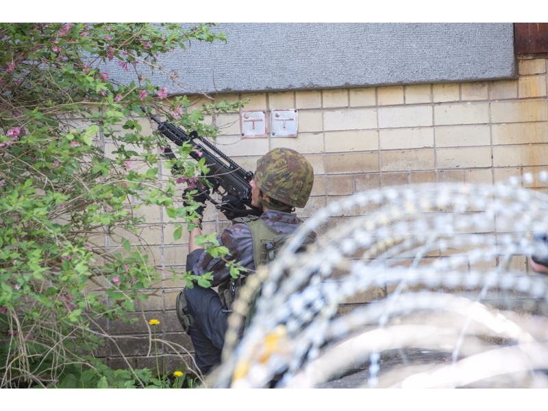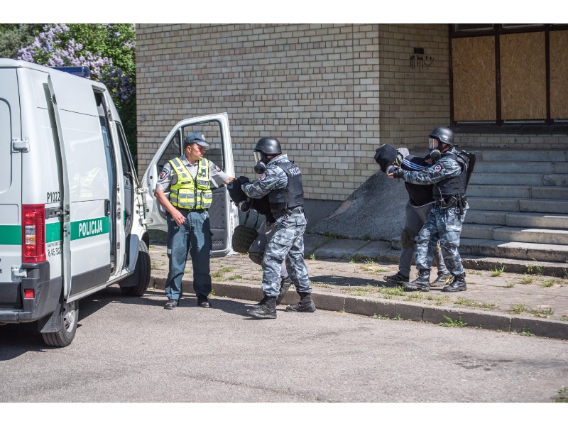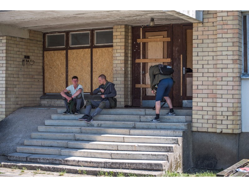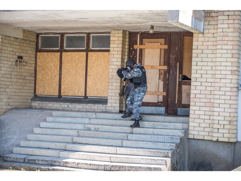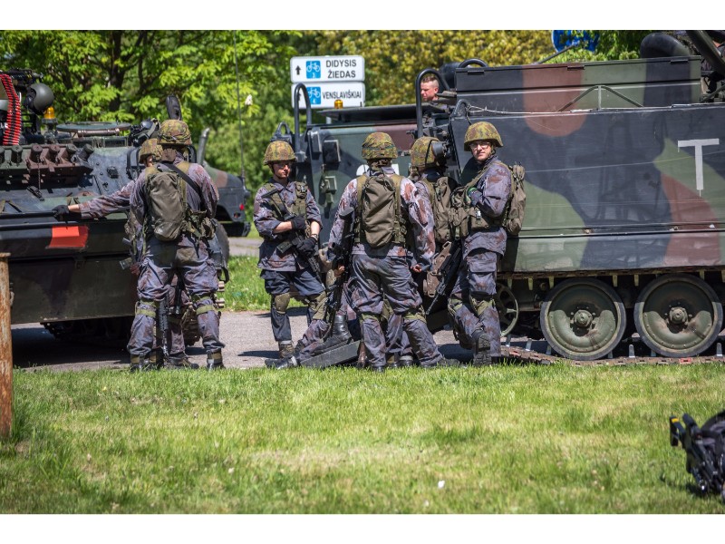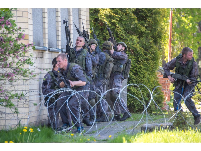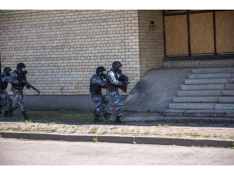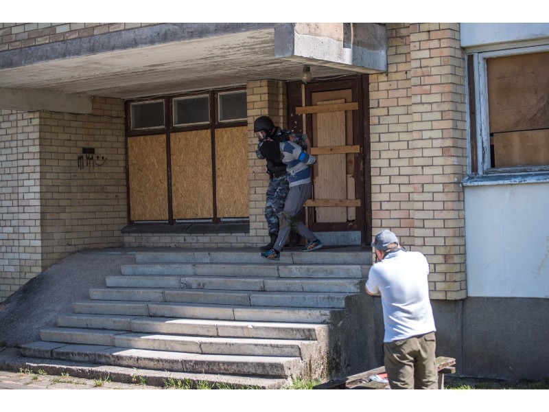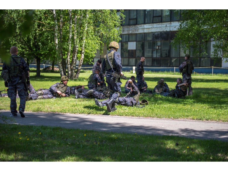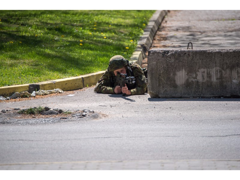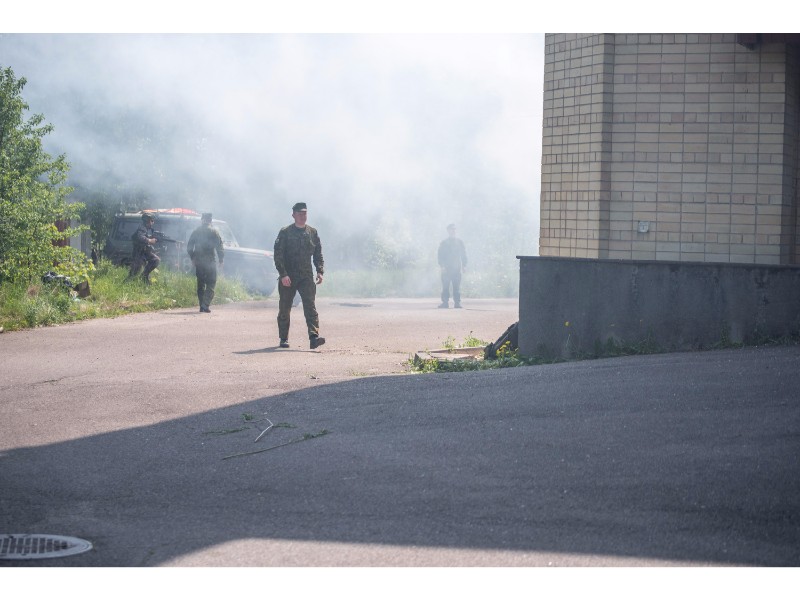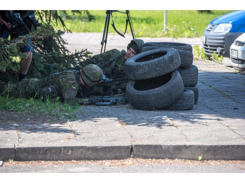 Karinės pratybos „Karaliaus kirtis 2017“ įgauna pagreitį. Nuo pat ankstyvo ryto Beržų gatvėje aidėjo šūviai ir sprogimai, šalia apleisto pastato buriavosi gausios pareigūnų ir karių pajėgos, tačiau praeivių karinė miesto padėtis jau nestebina.