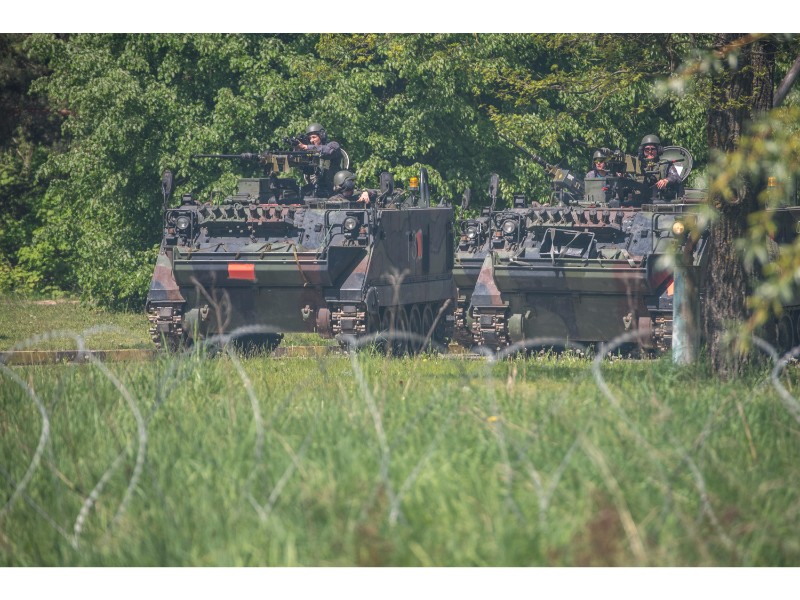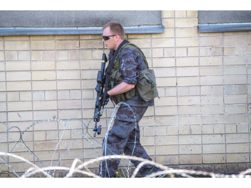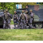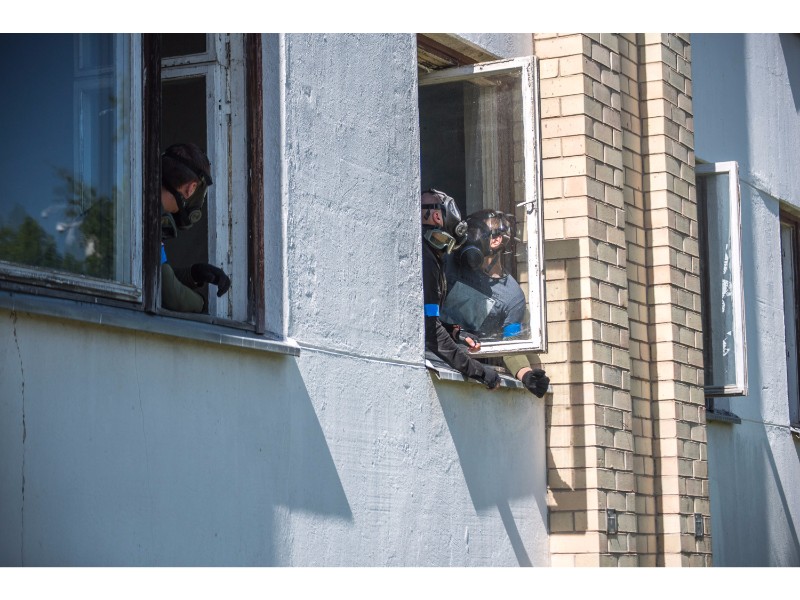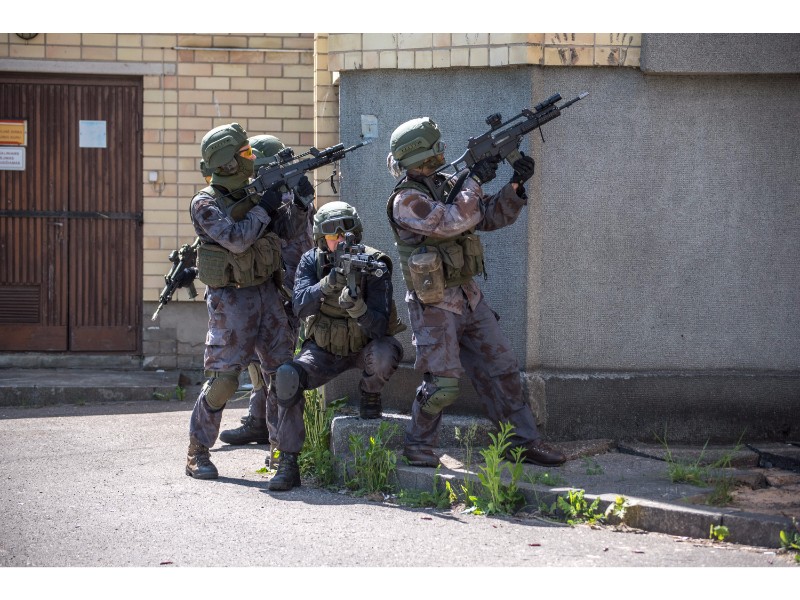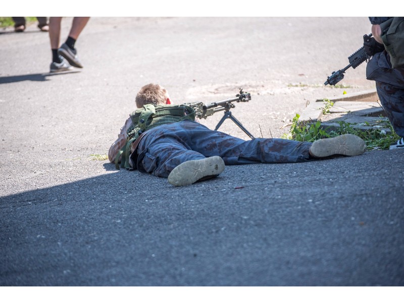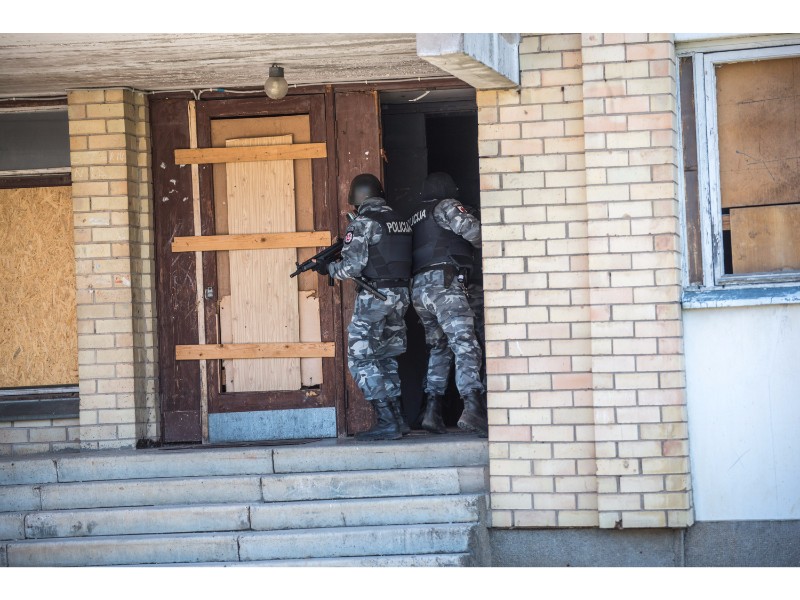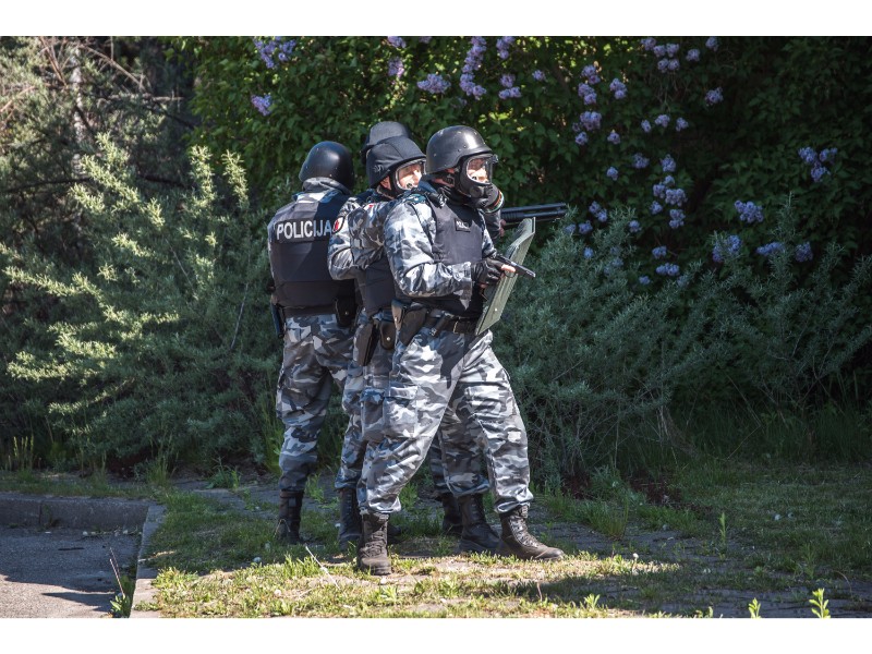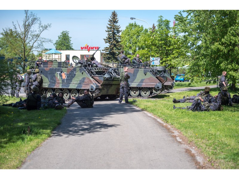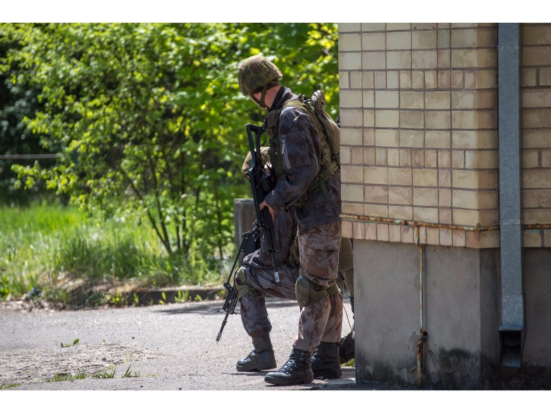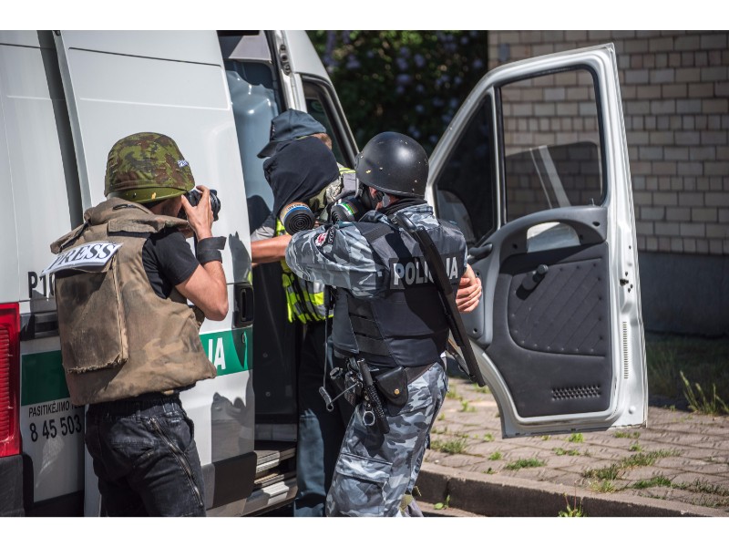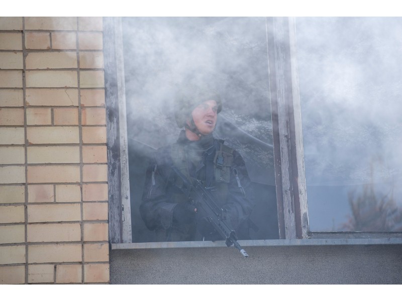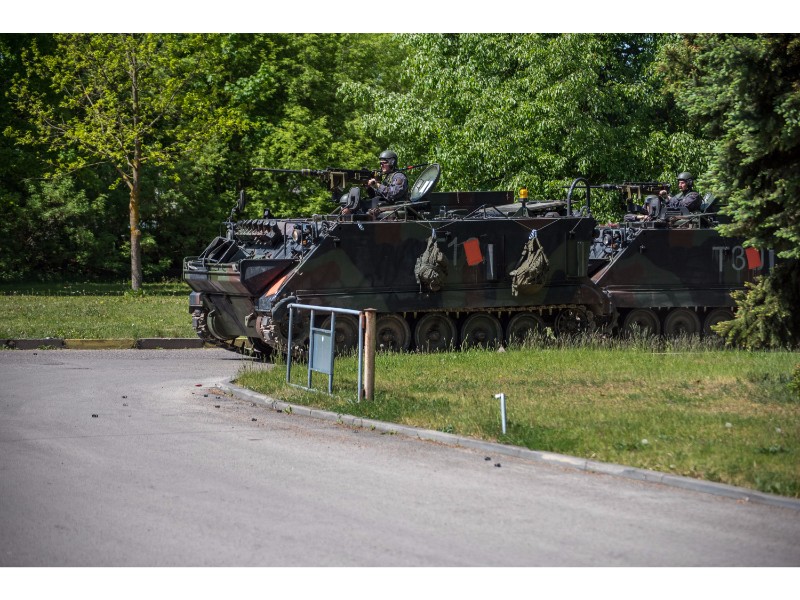 Karinės pratybos „Karaliaus kirtis 2017“ įgauna pagreitį. Nuo pat ankstyvo ryto Beržų gatvėje aidėjo šūviai ir sprogimai, šalia apleisto pastato buriavosi gausios pareigūnų ir karių pajėgos, tačiau praeivių karinė miesto padėtis jau nestebina.