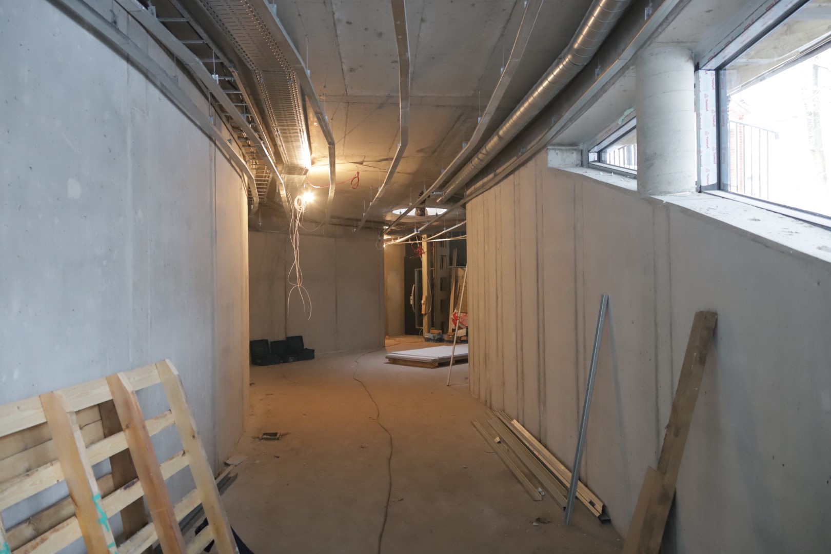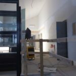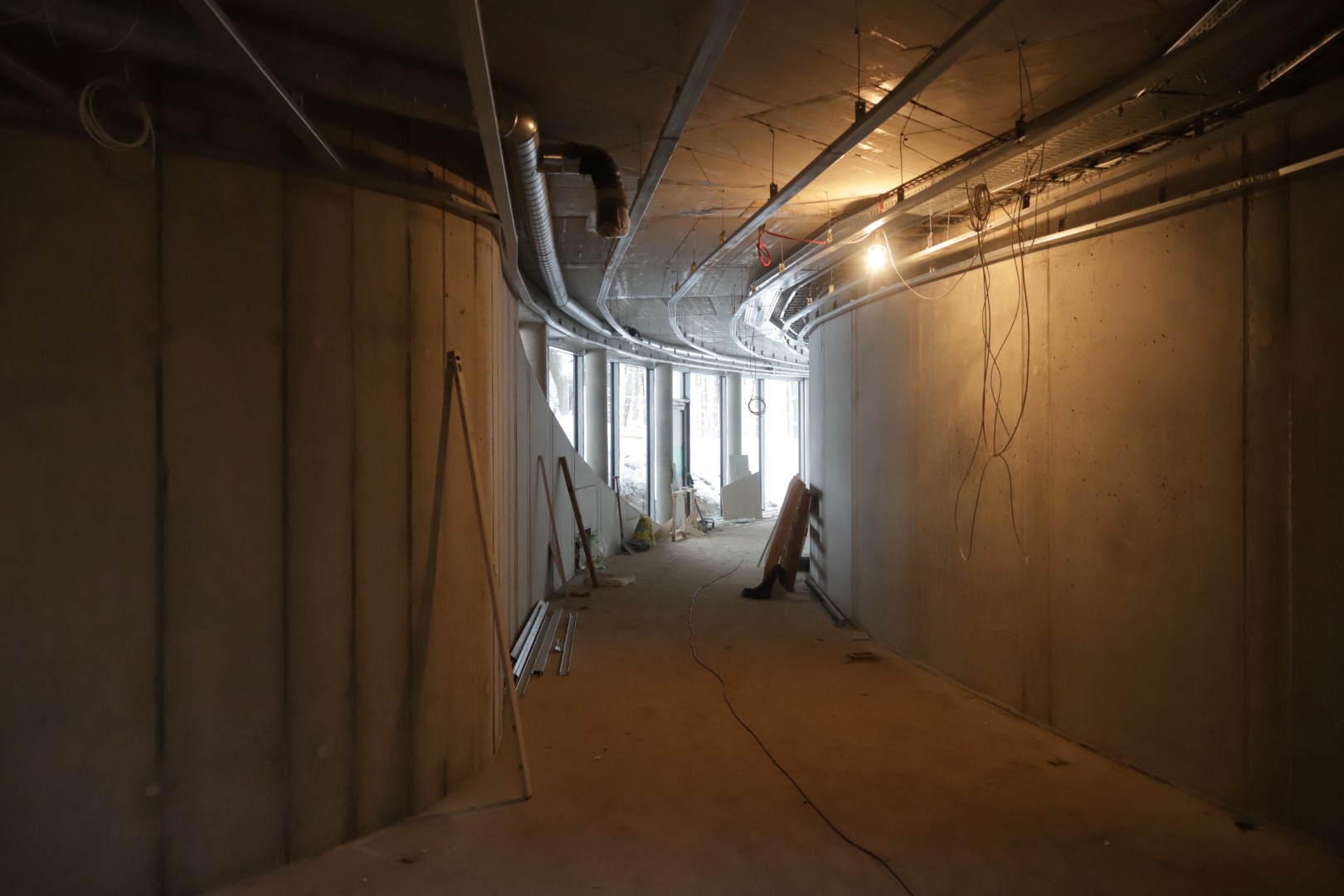 Naujos lanko formos patalpos per stiklines vitrinas atveria platų vaizdą į sodybos kiemą. Viduje esanti betono siena, pasak statybininkų, galbūt tarnaus planuojamos meno galerijos ekspozicijoms.