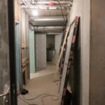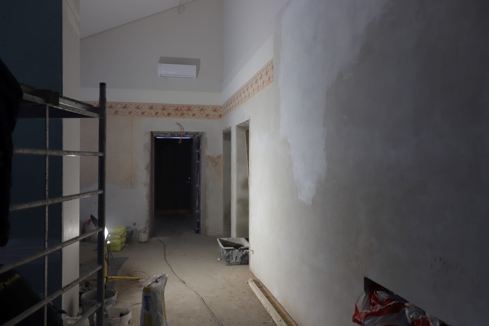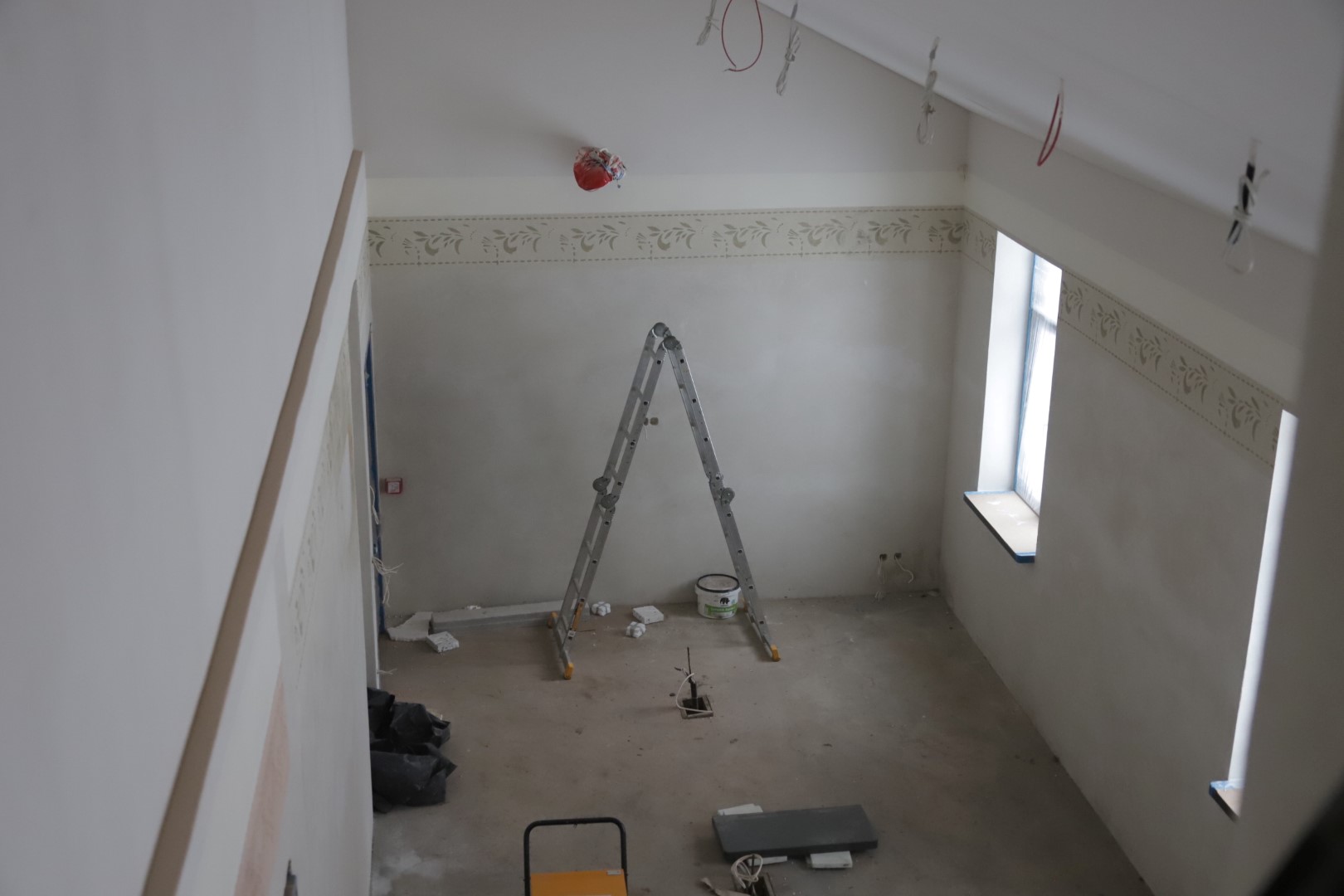„Užsibaigs šitie darbai, laukia antrasis projekto etapas“, – teigia rangovai, rodydami senajame name į rūsį vedančius laiptus.