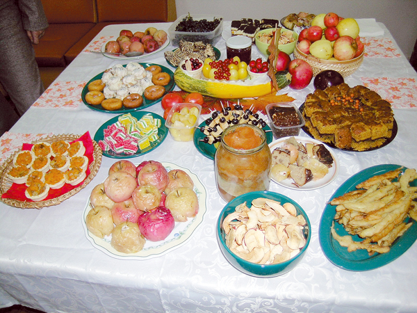 Netrūko ir džiovintų bei keptų obuolių, vynuogių, įvairių uogų ir daržovių, kelių rūšių uogienių ir kitokių gardumynų.