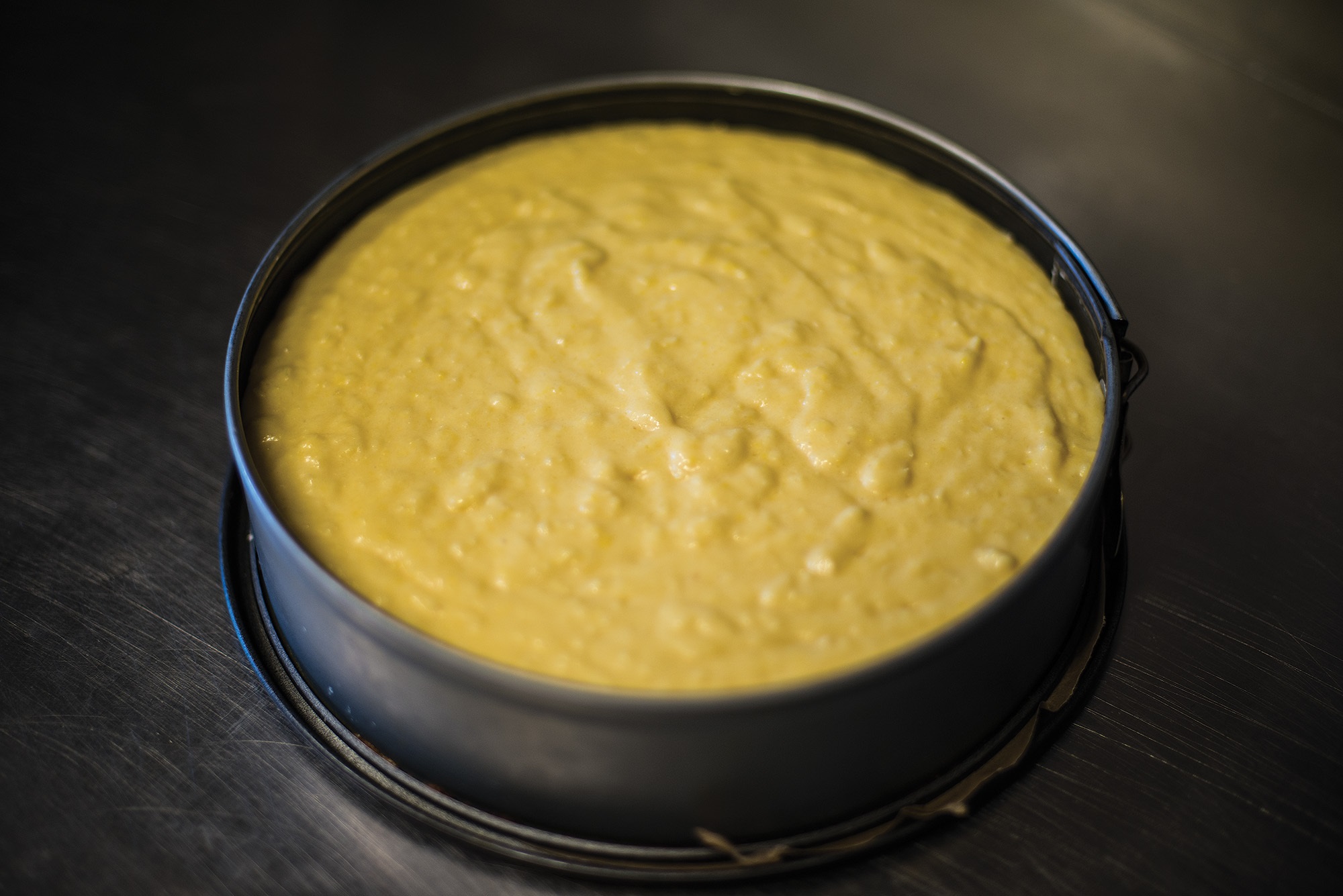 Paruošimas: kukurūzų grūdus sumaišykite su pienu, virtuvės kombainu susmulkinkite iki vientisos masės, kad neliktų grūdų luobelių. Kiaušinius suplakite su cukrumi, taip pat vaniliniu, į plakinį supilkite ištirpintą sviestą ir kukurūzų bei pieno tyrę. Tuomet suberkite su kepimo milteliais sumaišytus miltus ir labai gerai išsukite.