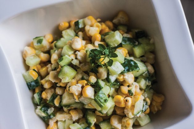 Kukurūzų ir agurkų salotos (2 porcijos)