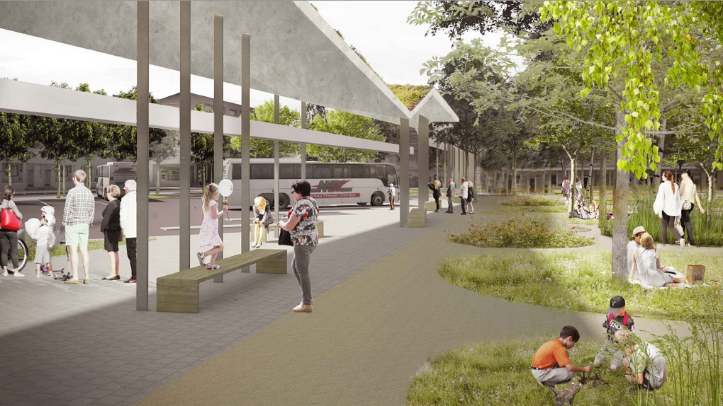 Pasak R. Paleko, autobuso laukiantys žmonės galės leisti laiką ne tik stotyje, ne tik po stogine, bet ir prie jos prisišliejusiame žaliame, o svarbiausia, saugiame skvere. Taip jis įgaus gyvybės, jame galės kurtis kavinukės, paslaugos, aplink jį nevažinės mašinos, kaip dabar, tai bus pėstiesiems skirta teritorija.