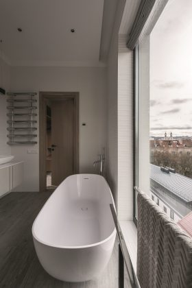 „Reikėjo ir daiktus pro terasą su virve užtempti, ir liftu didžiulius paveikslus atgabenti, bet, kai labai nori, viskam atsiranda išeičių“, – pasakojimą apie keturių kambarių penthauzo įrengimą Vilniaus centre pradeda Vismantė Tubelytė, studijos „Redeco“ įkūrėja. Įrengiant butą padangėse, taisykles daugiausia diktavo vaizdas pro langą. „Jei aplinka – moderni, nerekomenduojame rinktis klasikos, ir atvirkščiai“, – patvirtina interjero dizainerė.