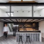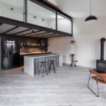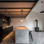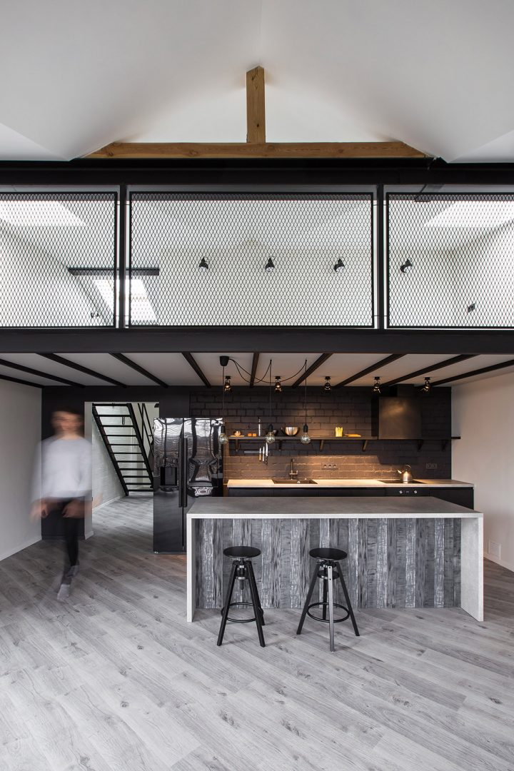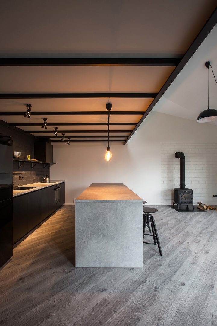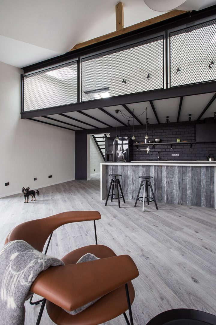 Konstrukcinės sijos, atviro mūro fragmentai tapo interjero dalimi – šitaip išgautos urbanistinėms erdvėms būdingos įdomios tekstūros. Interjerą pagyvina mediniai elementai: grindys, baldų detalės, virtuvės baro šukuotų ir tonuotų dailylenčių fragmentai bei jaukus taškinis apšvietimas.