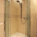 Su šios pertvaros atsiradimu buvo galima padidinti ir vonios kamabarį. Perkėlus duris prie pačios vonios (3) , prisidėjo dalis buvusio prieškambario ploto ir susiformavo savotiškas koridorius-šliuzas (4) , vonią ir tualetą užstojantis nuo svetainės. „Jei bute į vieną erdvę sujungtos svetainės, prieškambario, koridoriaus zonos, viena didžiausių problemų tampa vonios ir tualeto patalpų izoliavimas nuo bendros erdvės, – sako Gitana. – Nelabai malonu, kai durys į higienos patalpą atsidaro iš svetainės, kurioje tuo metu yra žmonių. Dar blogiau, jei jas pravėrus matyti santechnikos įranga, pavyzdžiui, klozetas“.