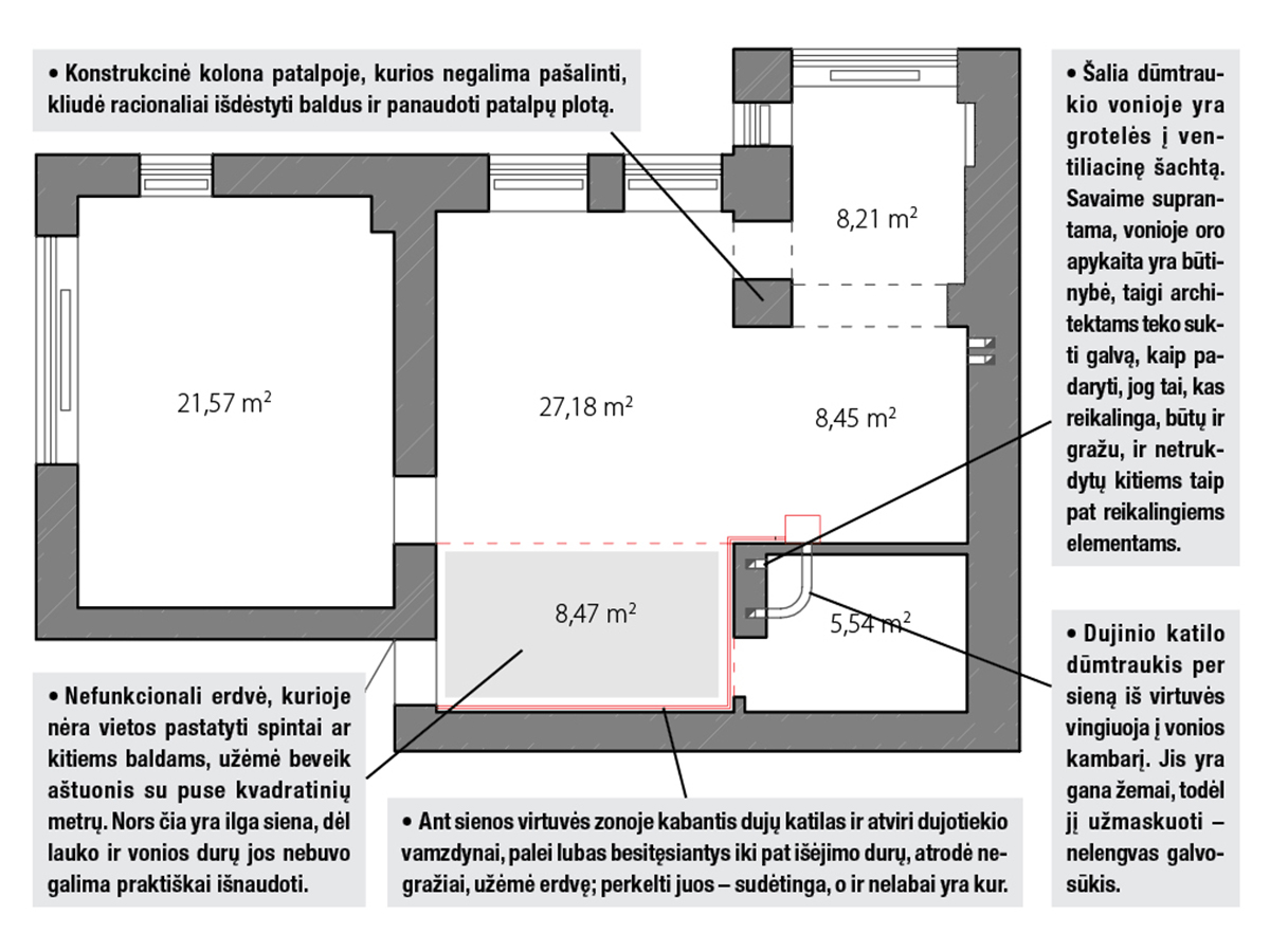 Kiekviena rekonstrukcija – tai galvosūkis, labiausiai primenantis kryžiažodį. Šio buto Kaune „atsakymus“ puikiai išlukšteno tokių kryžiažodžių profesionalai – architektai Gitana Valavičiūtė ir Audrius Gudelis.