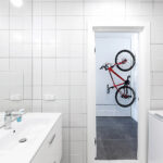 Kuriant interjerą svarbus kriterijus buvo aktyvus šeimininko gyvenimo būdas. Jis mėgsta keliauti, važinėtis dviračiais, bėgioti, žaisti kompiuterinius žaidimus, žiūrėti filmus, leisti laiką ne tik su keliais artimiausiais žmonėmis, bet ir su didesne kompanija. Kino teatro arba vakarėlio atmosferą sužadina bendroje zonoje, priešais sofą, kabantis projektorius – jis gerai matomas tiek iš bendro kambario, tiek iš virtuvės. Buto savininko hobius išduoda ant sienos kabantis dviratis.