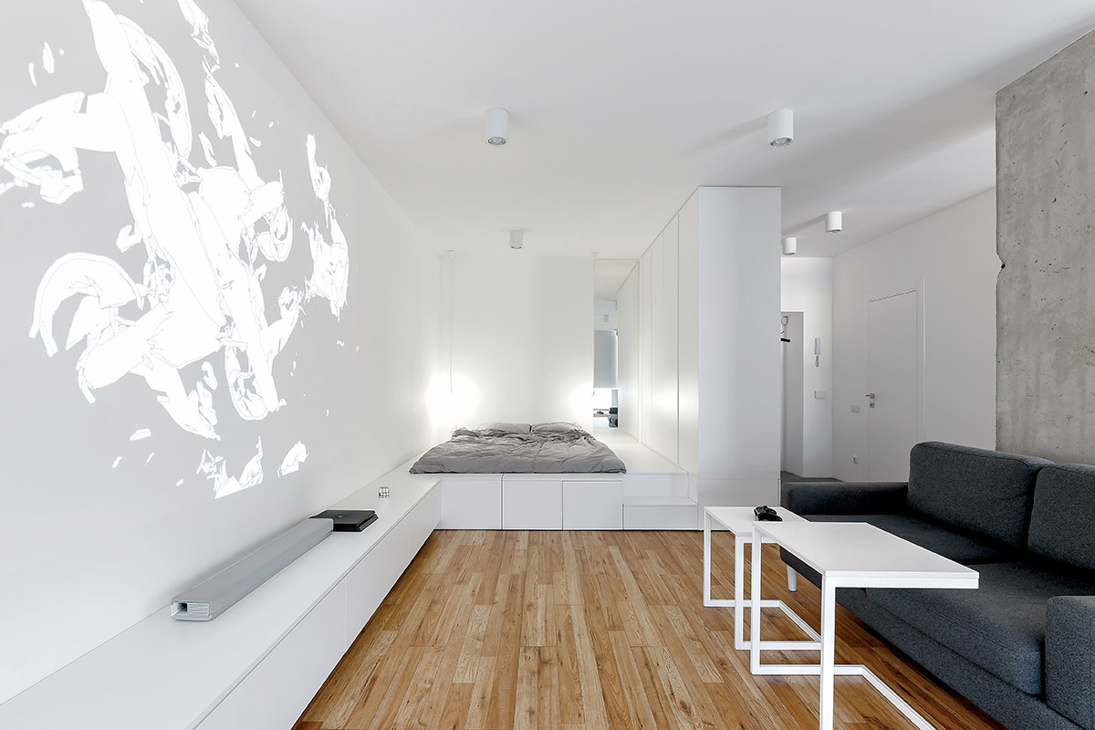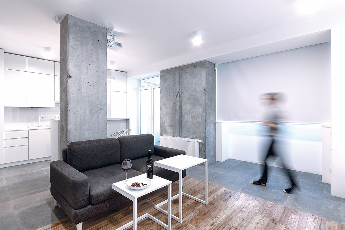 Ukrainoje, Lvove, esančio būsto interjeras tik patvirtina daug kartų girdėtą frazę, kad namai turi tarnauti žmogui, o ne priešingai. Studijos „Hrystia Koliasa Architecture“ architektė Hrystia Koliasa įrengė vos 45 m2 ploto butą, kuriame telpa viskas, ko reikia patogiam gyvenimui.