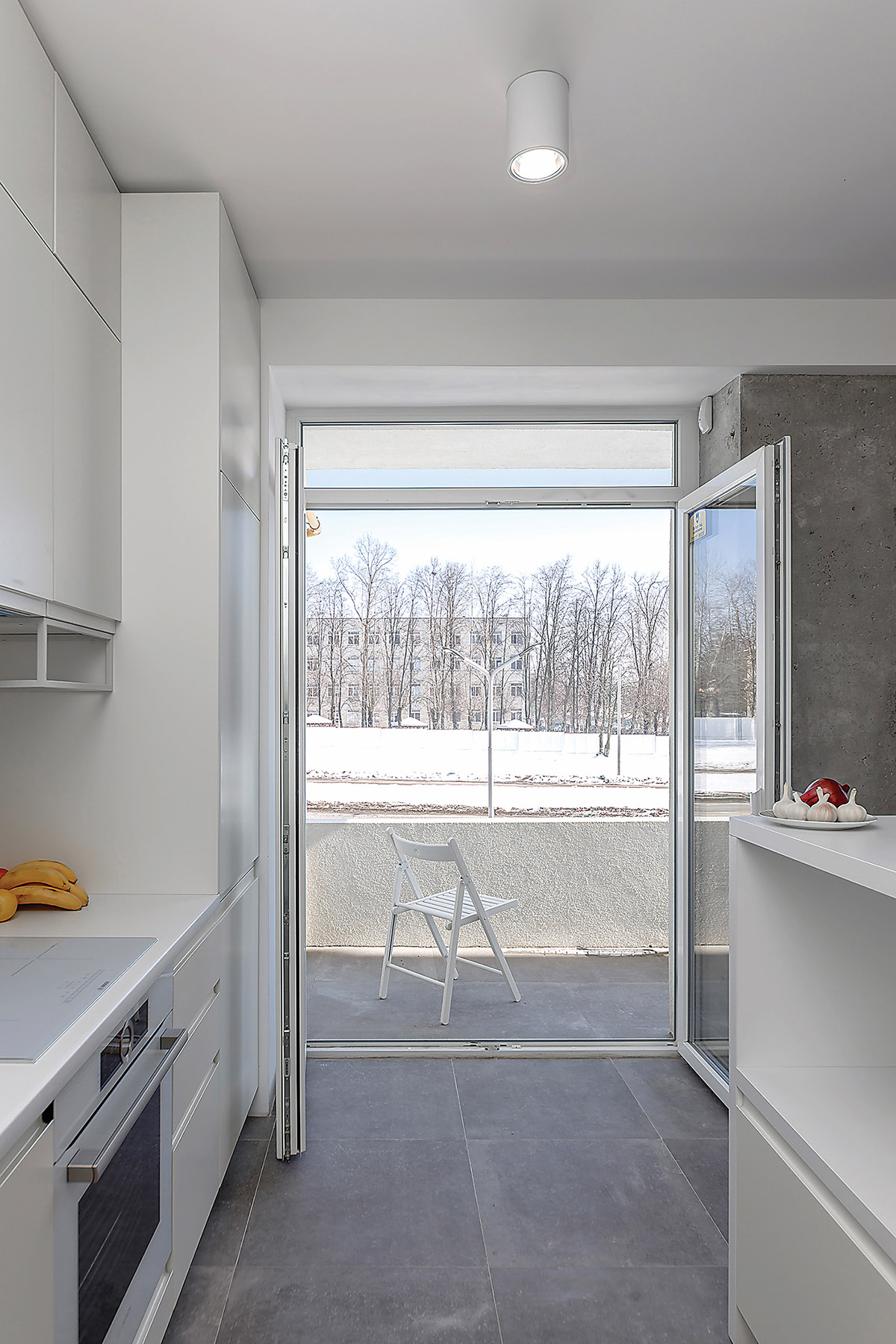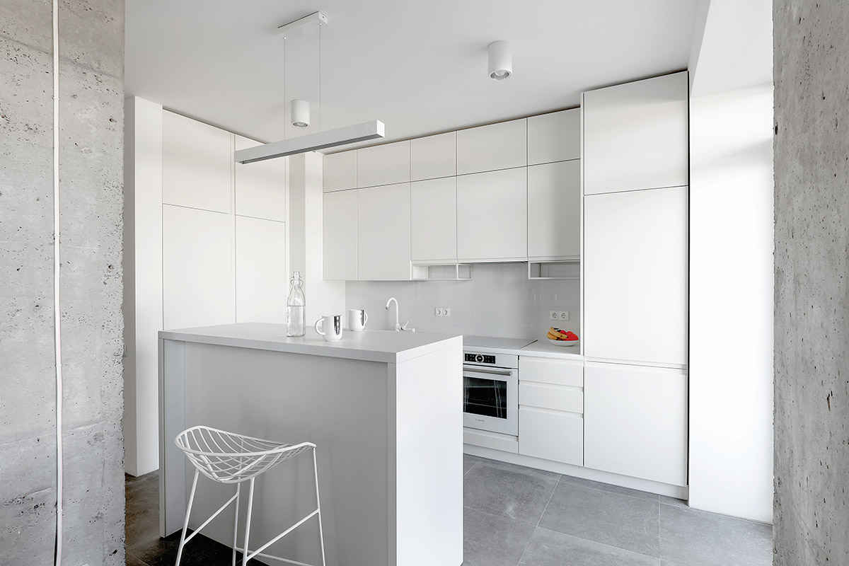 Ukrainoje vis dar egzistuoja stereotipas, kad balta – labai nepraktiška spalva, nes gali matyti kiekvieną dulkelę. „Aš galvoju, kad balta yra labai praktiška, nes matyti, kokie švarūs kai kurie paviršiai“, – pastebi architektė. Be to, ši spalva neblaško, tad daugiau dėmesio galima skirti vaizdui už lango.