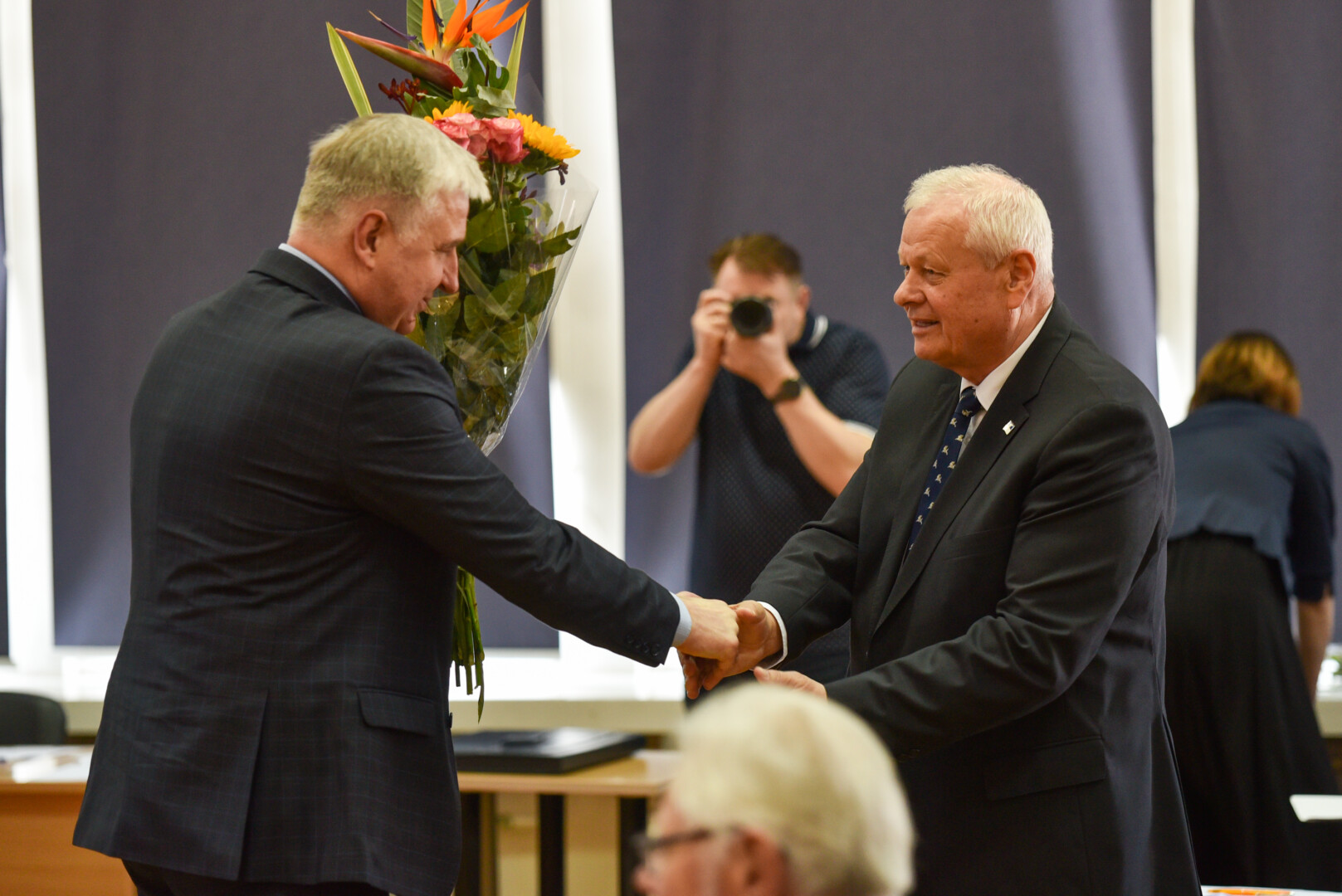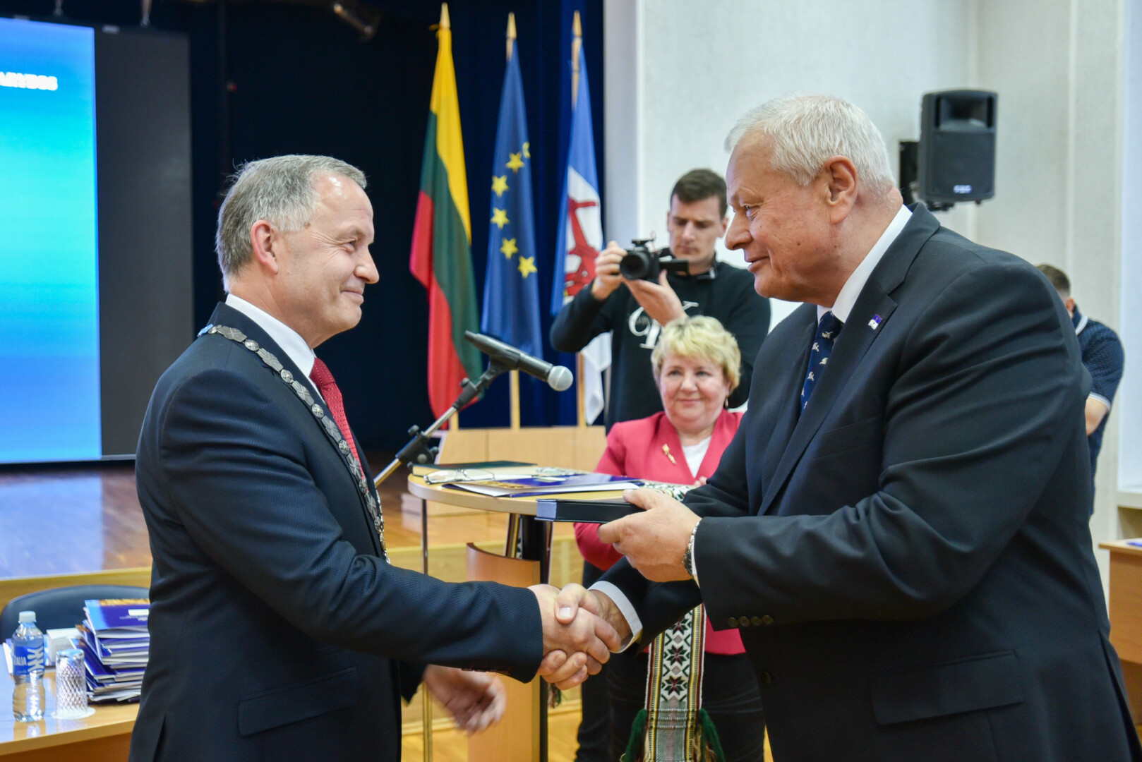 Po iškilmingos priesaikos ceremonijos nusidriekė buvusio ir naujojo mero bei Tarybos sveikintojų eilė.